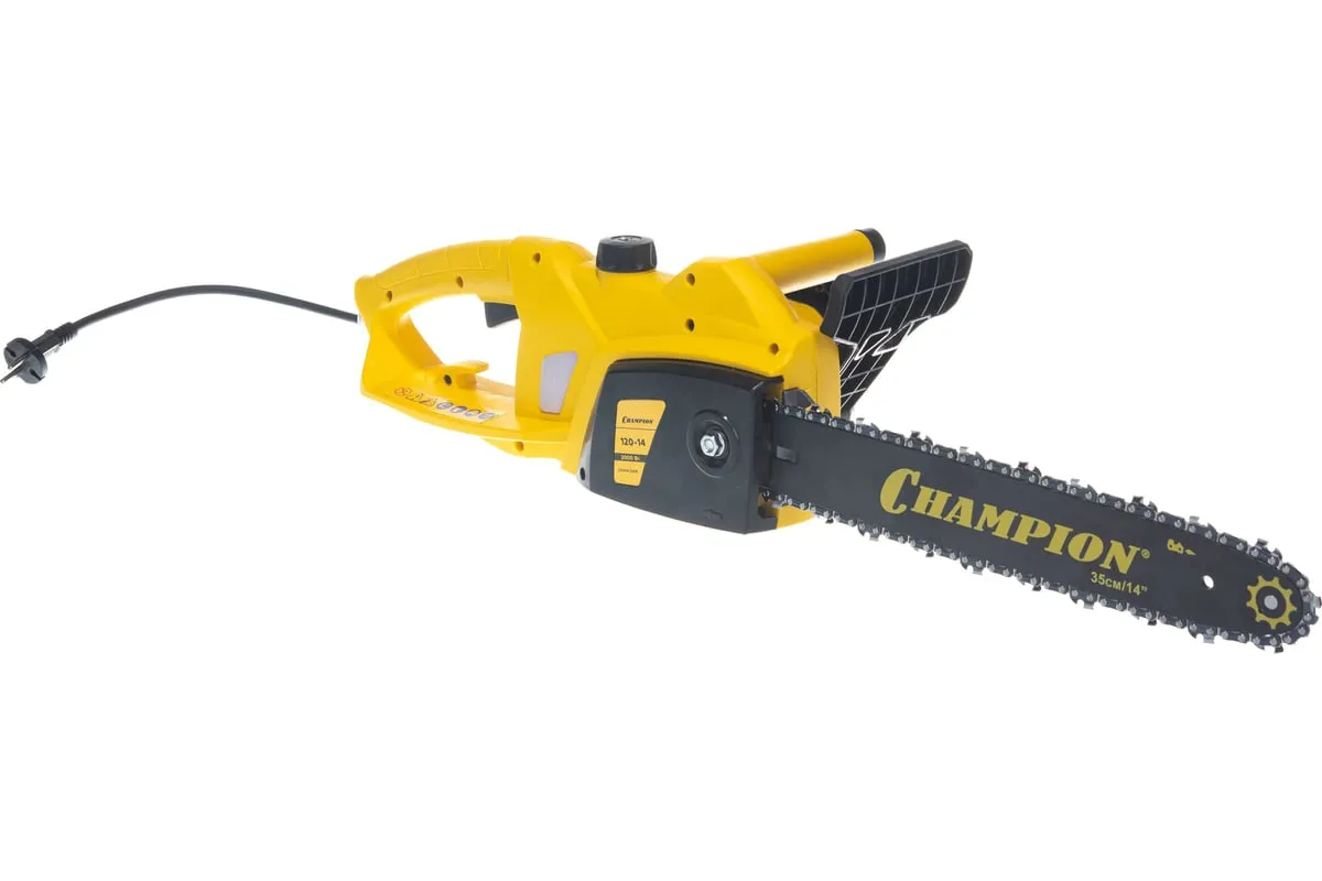 Электропила Champion 120-14" - легкая модель для выполнения бытовых задач. Работает от электрической сети с обычным напряжением (220 В). Отличается удобством и простотой в обращении. Оснащена тормозом цепи для исключения травмирования оператора в случае отскока. Предусмотрен крючок для закрепления сетевого кабеля.