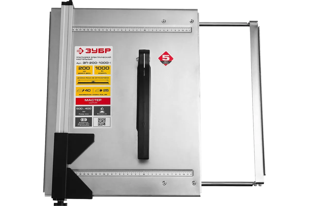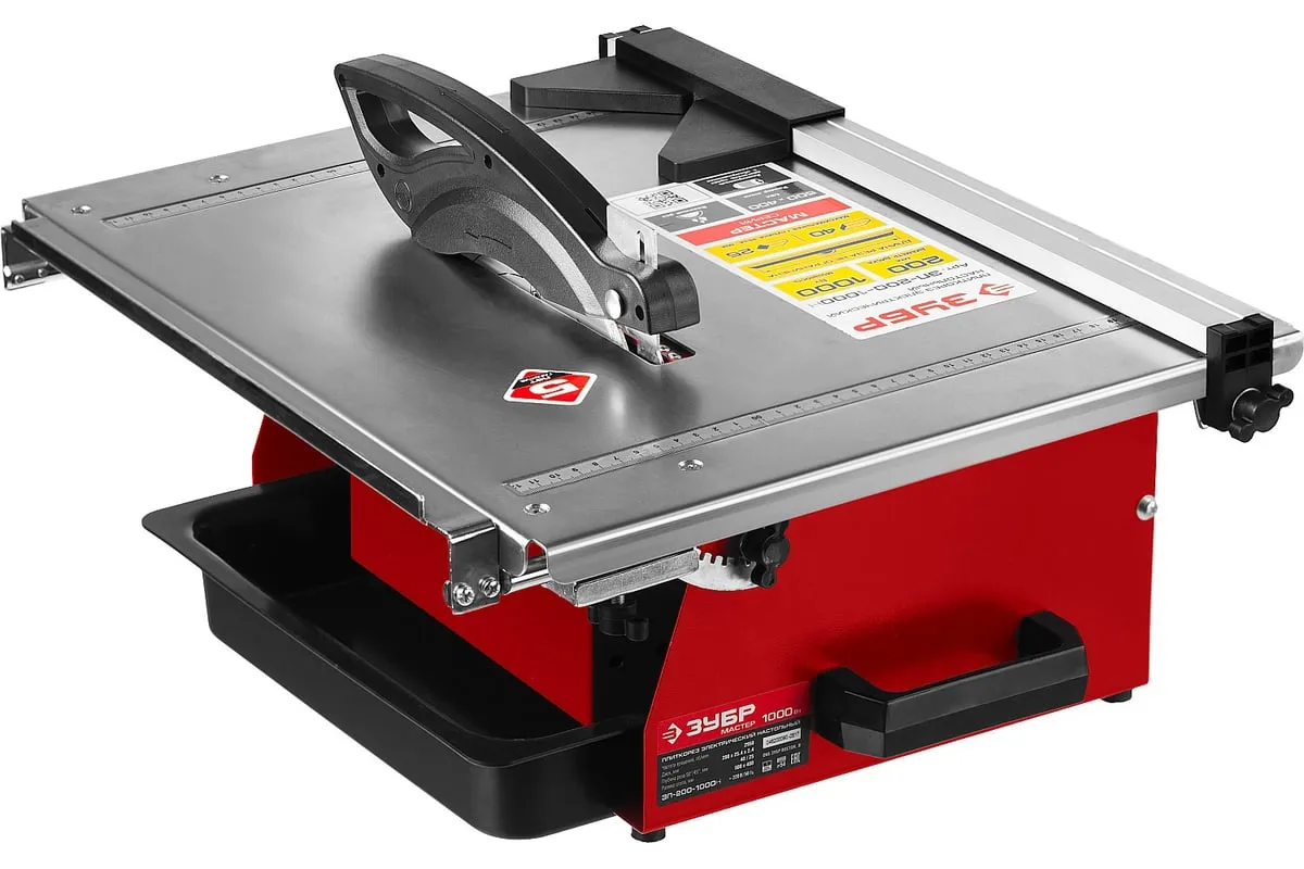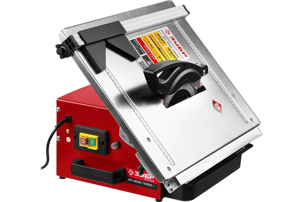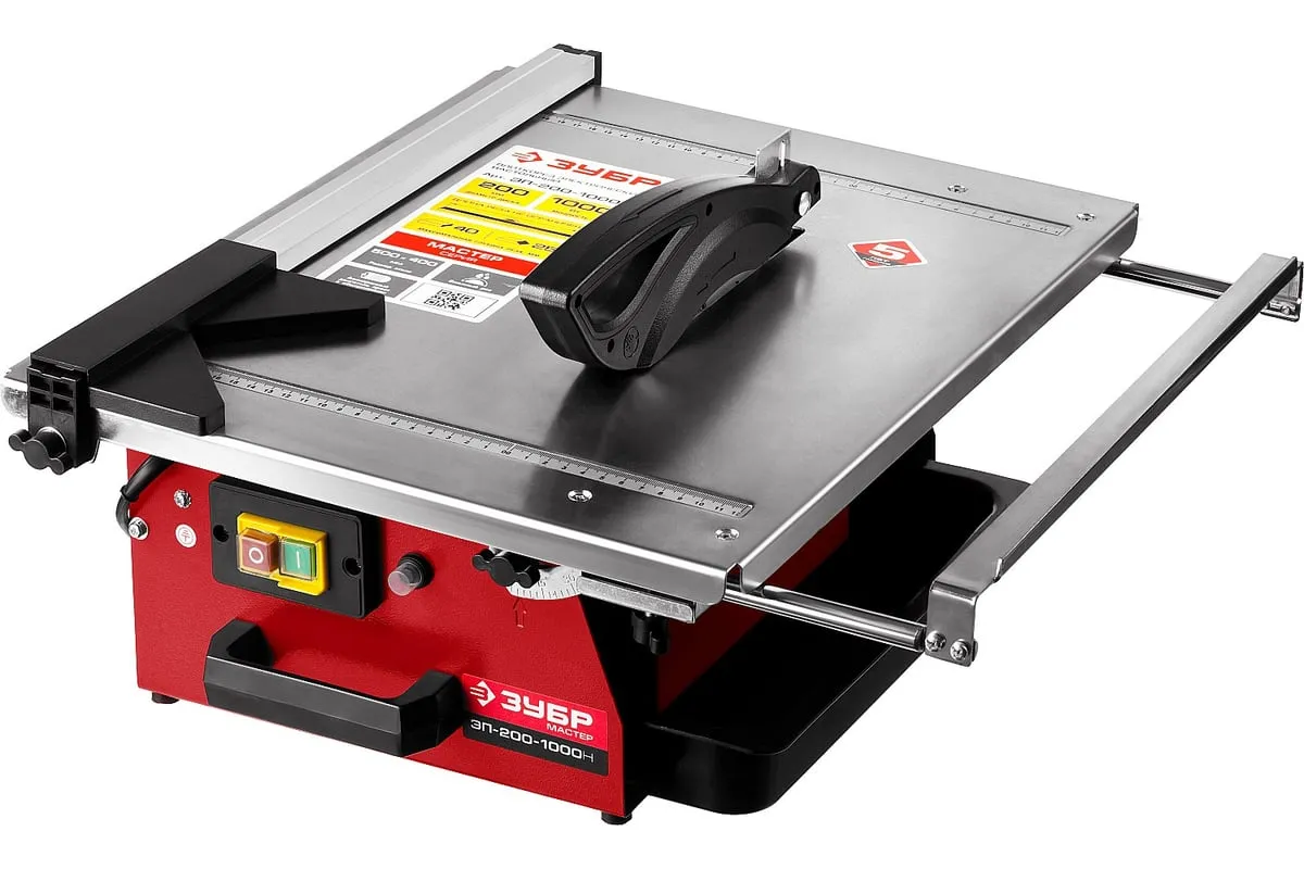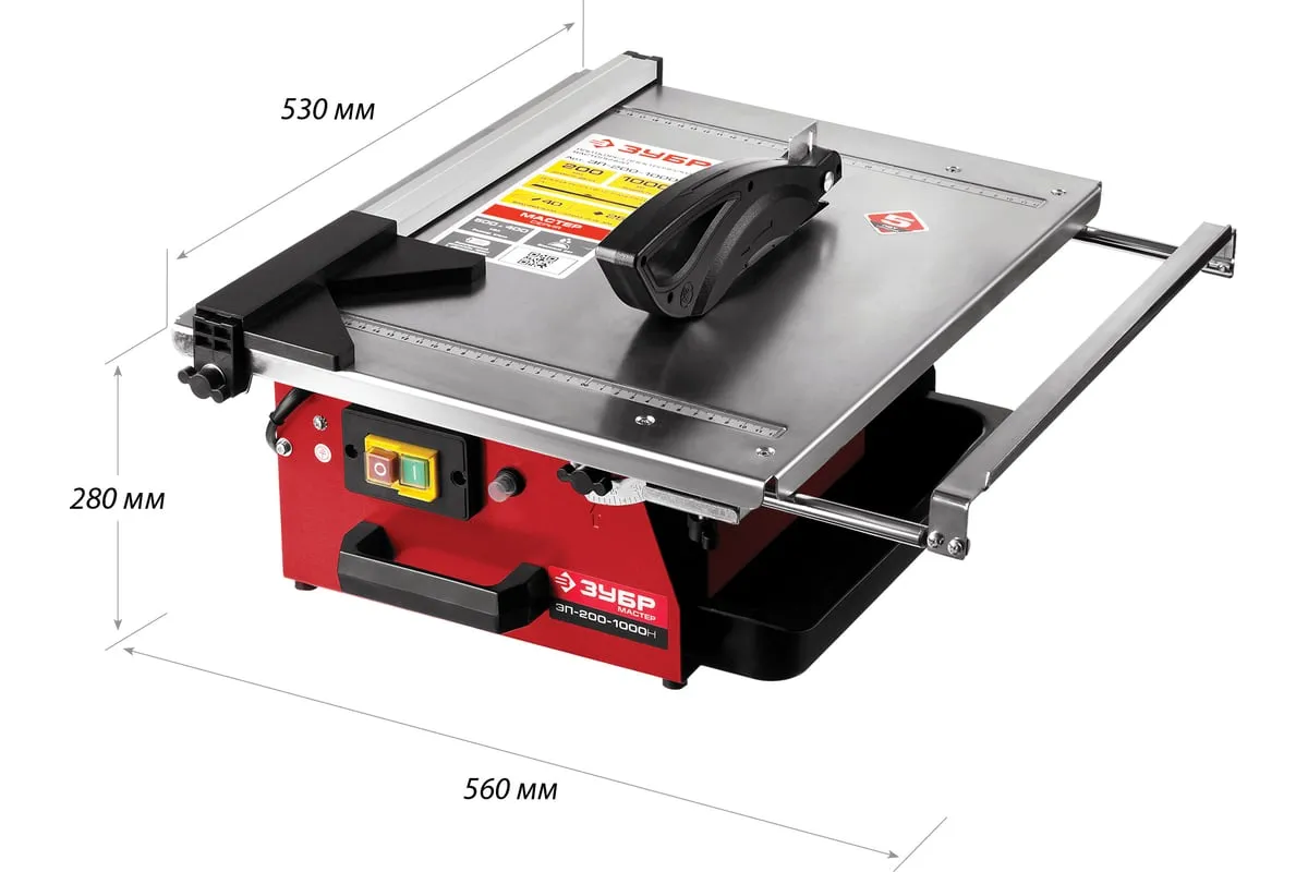 Электроплиткорез МАСТЕР ЗУБР ЭП-200-1000Н оборудован асинхронным двигателем, который не требует специального обслуживания. Агрегат подойдет для резания напольной, настенной, тротуарной и облицовочной плитки. Размеры стола 500x400 мм и отсутствие бортов дают возможность работать с плиткой большинства стандартных размеров. Для охлаждения диска предусмотрено наличие специальной емкости для воды.