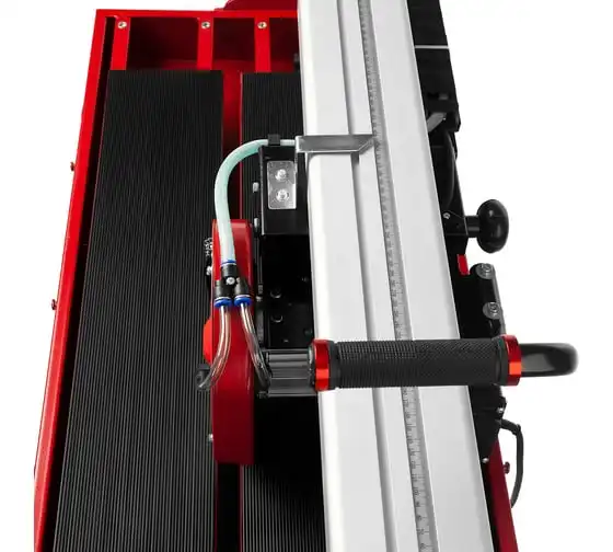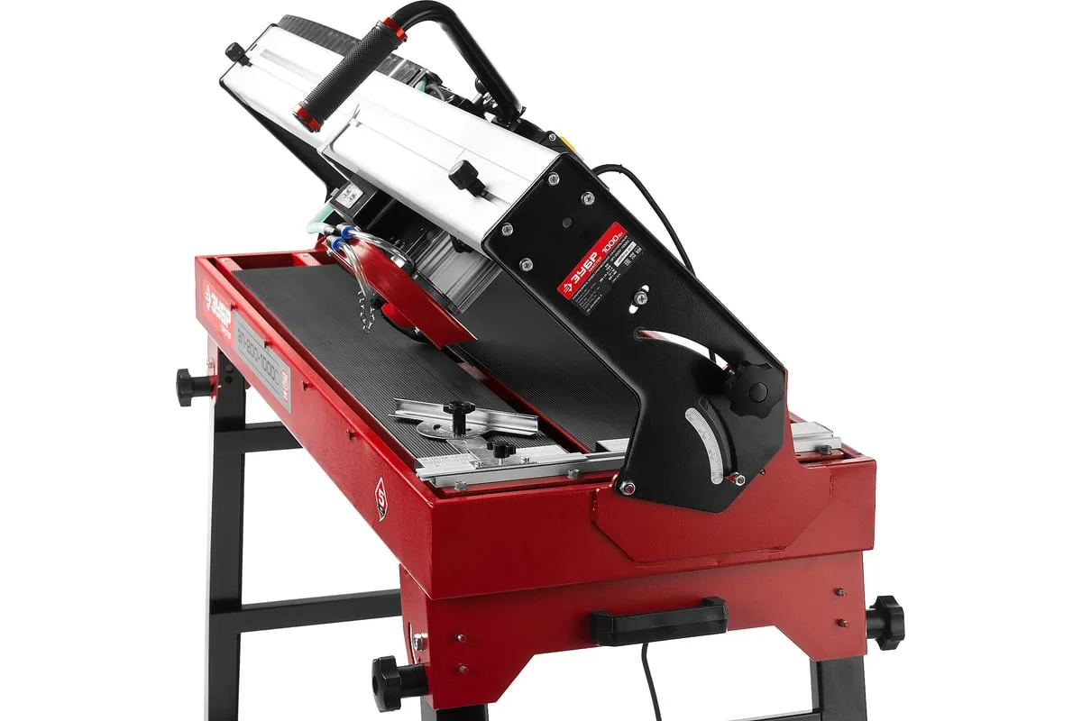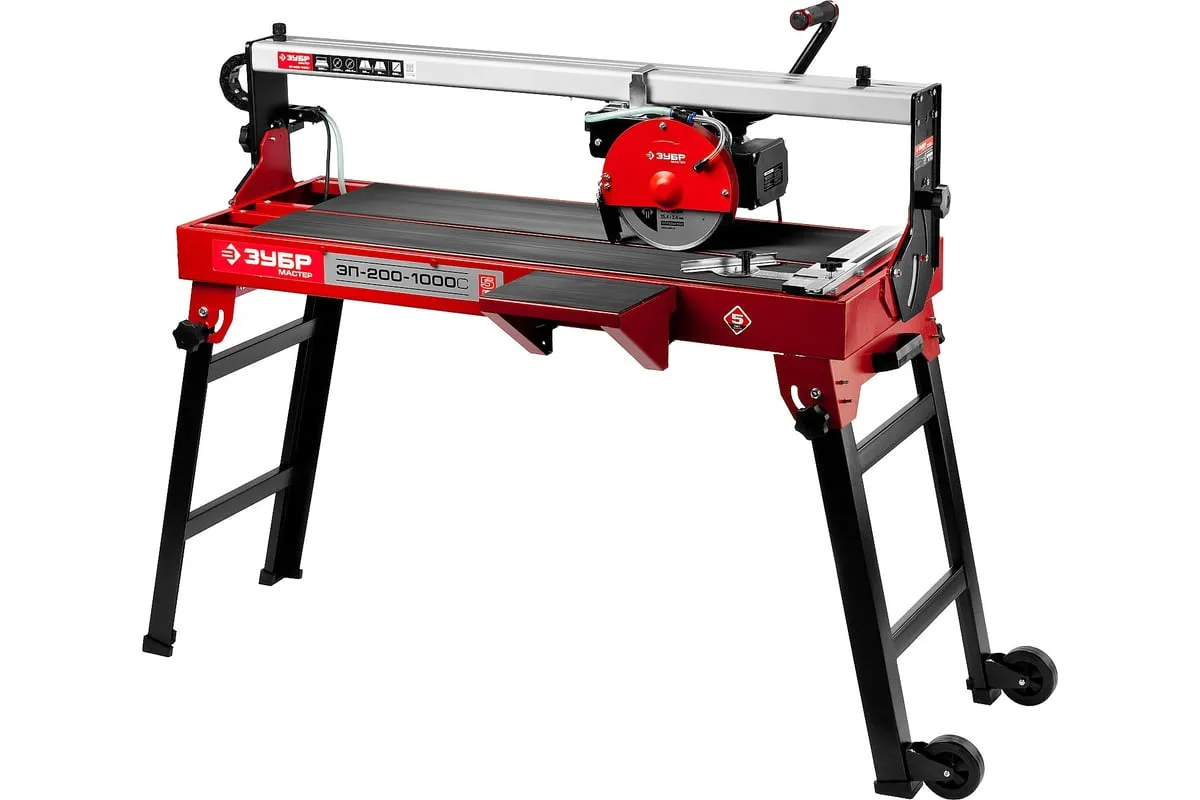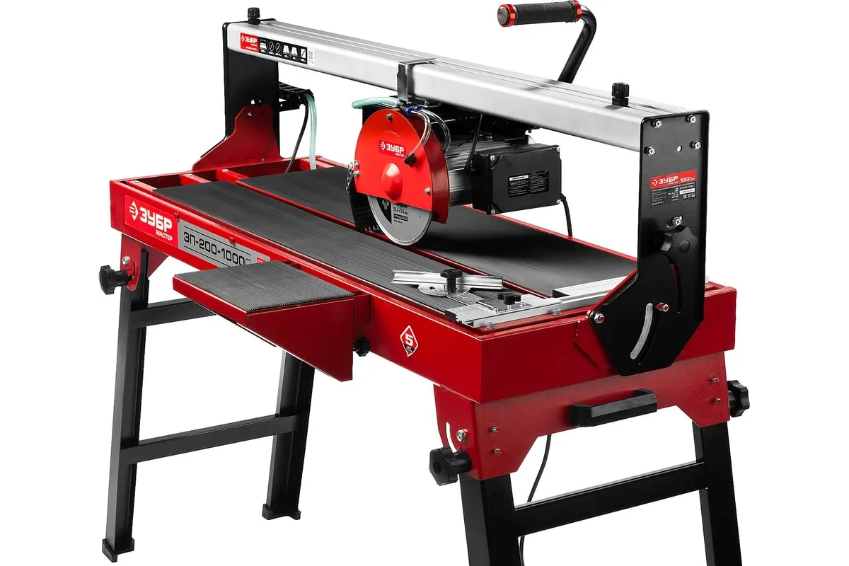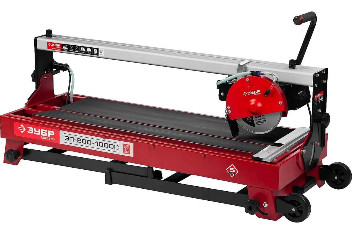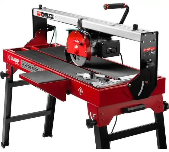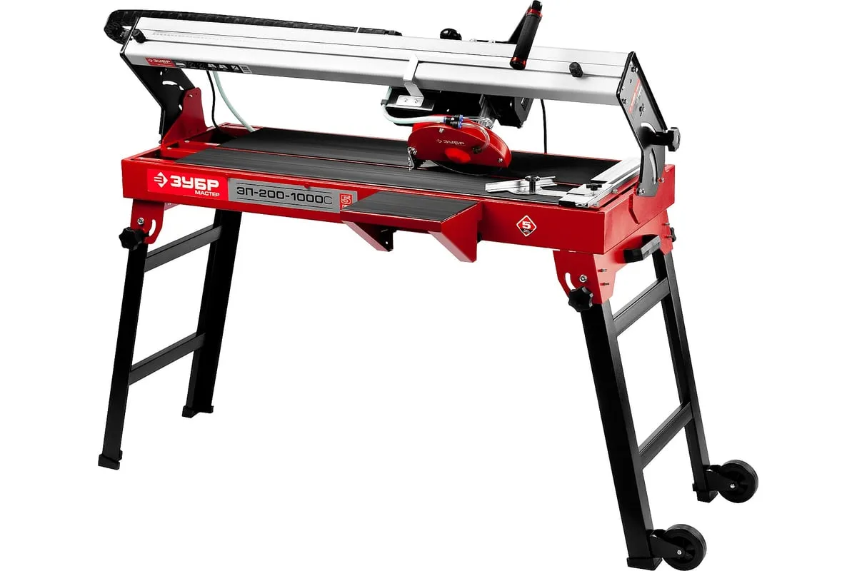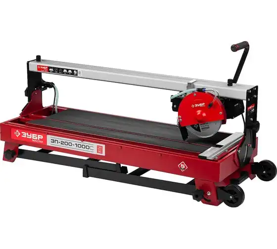 Электроплиткорез МАСТЕР ЗУБР ЭП-200-1000С оборудован подвижной головкой диска, что повышает безопасность оператора при работе, так как нет необходимости "протягивать" плитку через диск. Агрегат предназначен для работы с различными видами плитки. Предусмотрена принудительная подача воды на место реза, это предотвращает образование пыли и снижает нагрузку на двигатель.
