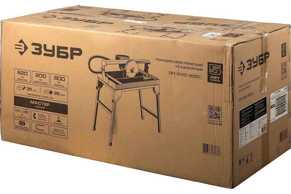 Электроплиткорез МАСТЕР ЗУБР ЭП-200-800С имеет небольшой вес и складные ножки, за счет чего его легко перемещать по рабочей территории и удобно хранить в сложенном виде. Плиткорез имеет подвижную головку диска, что исключает необходимость "протягивания" плитки через диск. Предусмотрена принудительная подача воды на место реза, это предотвращает образование пыли и снижает нагрузку на двигатель. Агрегат предназначен для работы с различными видами плитки.