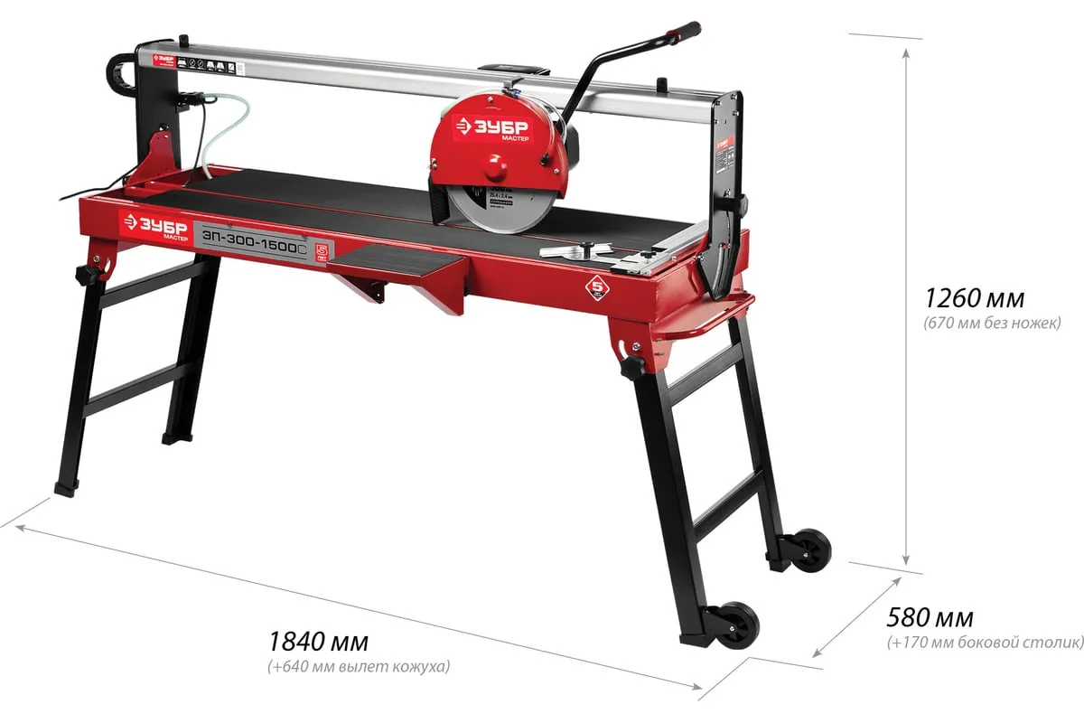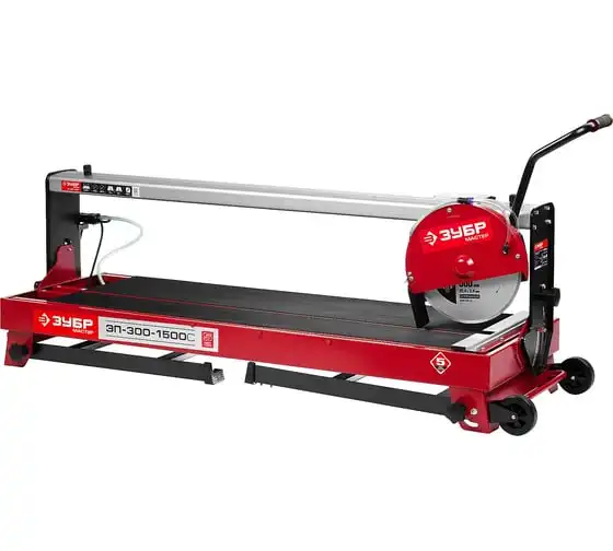 Длина реза при помощи электроплиткореза МАСТЕР ЗУБР ЭП-300-1500C достигает 1200 мм. Агрегат предназначен для работы со всеми видами плитки. Плиткорез имеет подвижную головку диска, что исключает необходимость "протягивания" плитки через диск. Предусмотрена принудительная подача воды на место реза, это предотвращает образование пыли и снижает нагрузку на двигатель.