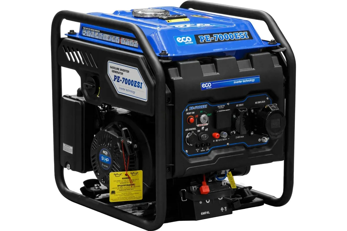 Генератор инверторный бензиновый ECO PE-7000ESI (EC1710-2) предназначен для автономного электроснабжения устройств с высокими требованиями к качеству электрической энергии в условиях отсутствия бытовой электросети. Он оснащён электростартером и возможностью автоматического запуска (имеется разъем для подключения блока автоматики), что делает его удобным в эксплуатации.