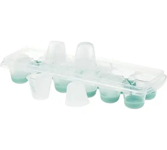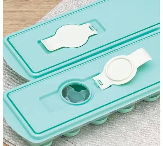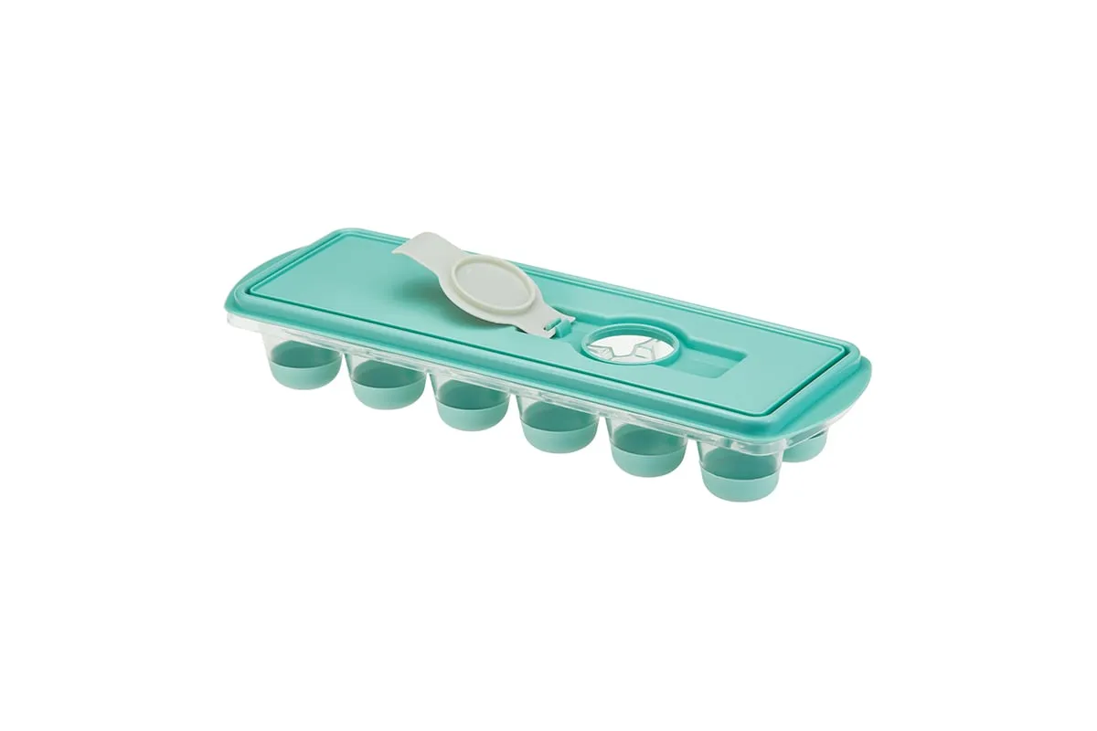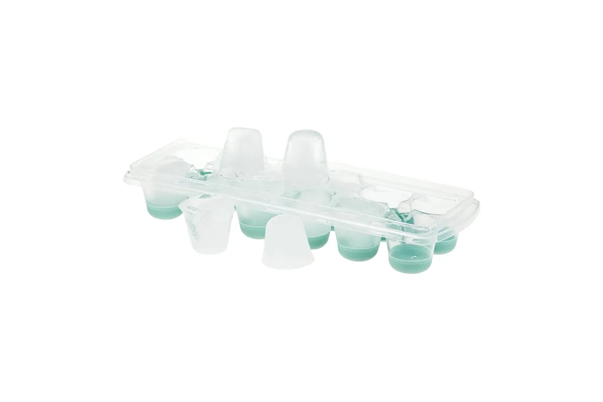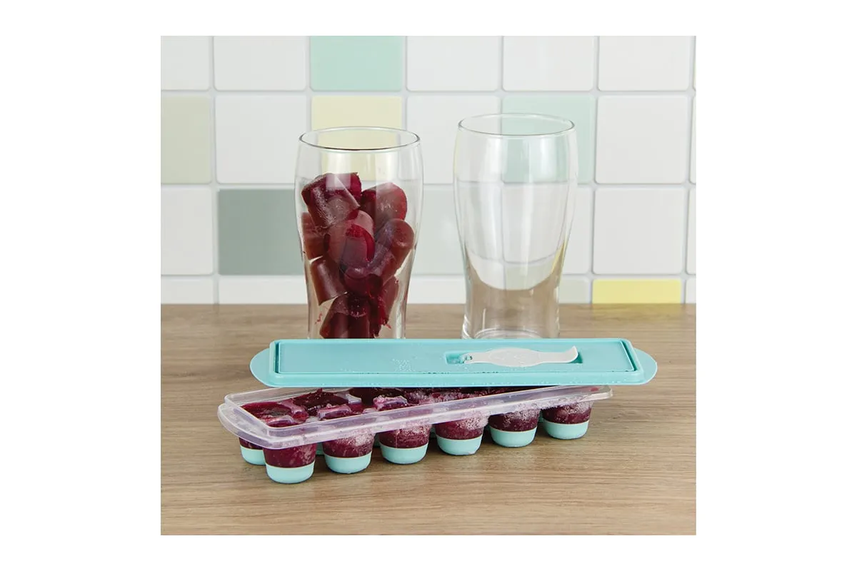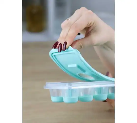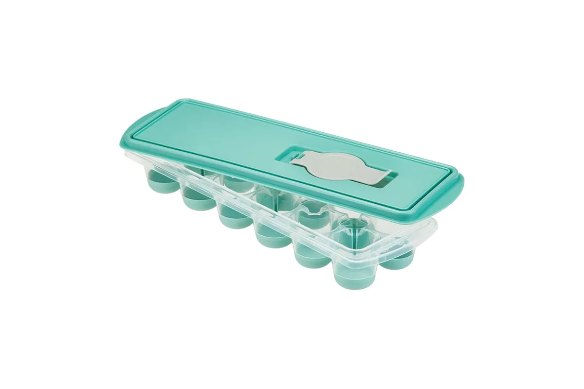 Форма для льда с крышкой и клапаном имеет эластичные вставки по дну формы, для удобного и комфортного извлечения льда. Благодаря этому можно одним движением извлекать замороженный лед из формы. Форма состоит из пищевого пластика. В ней можно замораживать воду, сок, мороженое, шоколад, а также фрукты. Форма имеет 12 ячеек размеры которых: Ø 3,2 × 2,5 см. После использования она легко моется (можно мыть в посудомоечной машине). Полиэтиленовая крышка удобна тем, что при низкой температуре она не теряет свою гибкость и ее легко снять. С помощью клапана можно налить воду в форму не снимая крышки и расплескать ее невозможно.