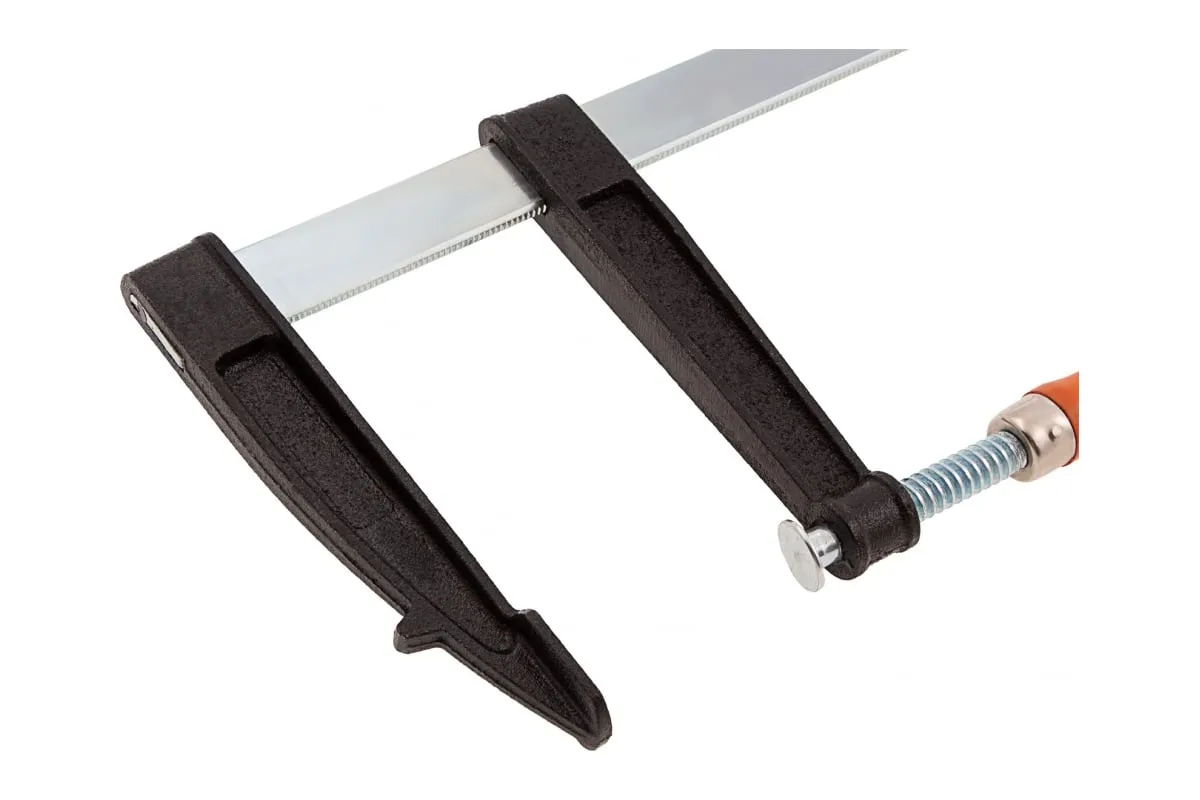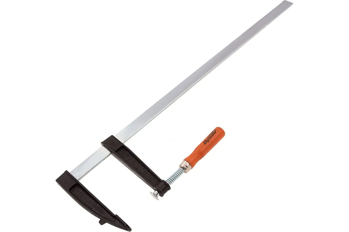 F-образная струбцина SPARTA 600x120x670 мм 204425 используется в столярном и слесарном деле и позволяет фиксировать заготовки из металла, древесины и других материалов для их соединения или обработки. Деталь помещают между губками, одна из которых подвижна и служит для регулировки величины захвата. Винтовой зажим позволяет прикладывать значительное усилие для надежной фиксации. Эргономичная деревянная рукоять обеспечивает комфортную работу. Защитные накладки предотвращают повреждение детали. Элементы конструкции выдерживают высокую температуру, поэтому струбцина подходит для проведения сварочных работ, при этом пластиковые накладки необходимо снять.