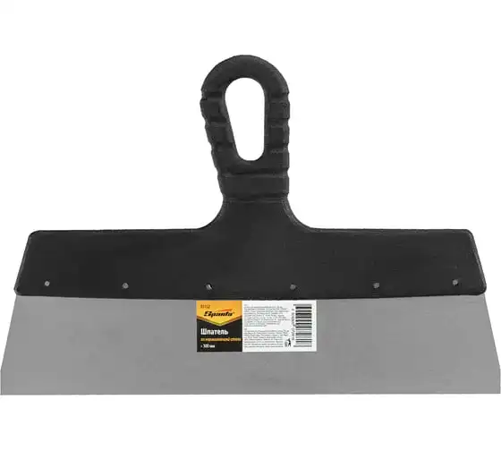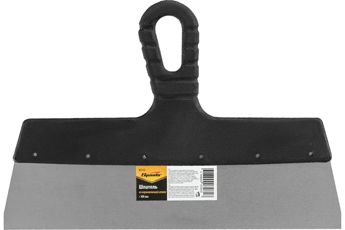 Фасадный шпатель Sparta 85152 с полотном из нержавеющей стали шириной 300 мм и пластмассовой ручкой предназначен для работы со строительными растворами. Используется для их смешивания, нанесения и равномерного распределения по малым или большим поверхностям.