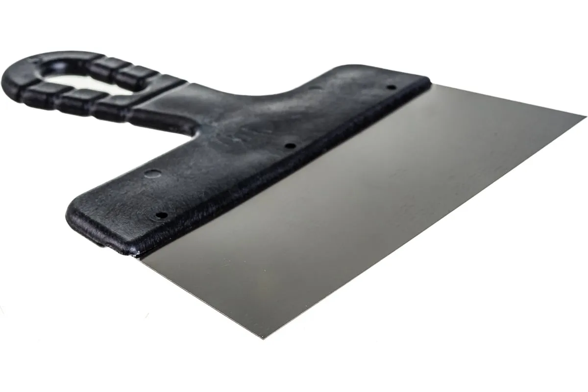 Шпатель из нержавеющей стали используется для нанесения шпатлевки на стены. Рабочее полотно выполнено из нержавеющей стали. Ручка эргономичной формы обеспечивает надежный захват в руке.