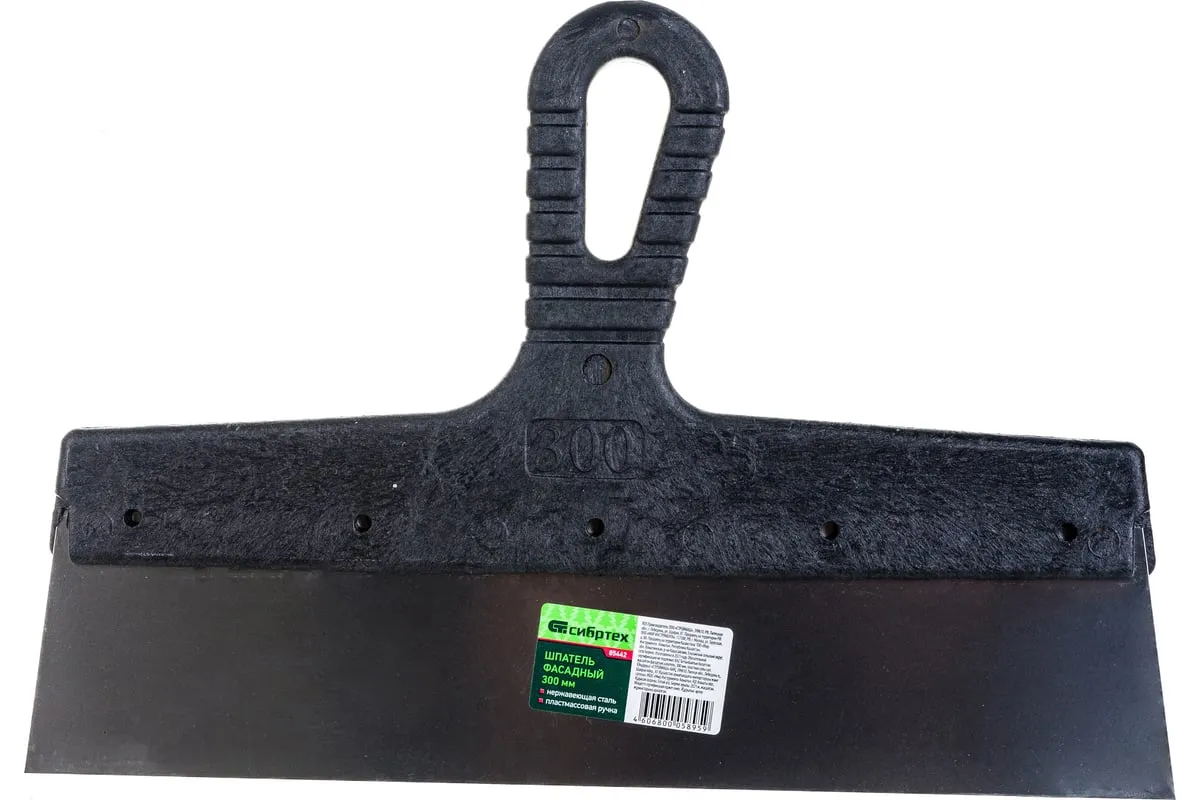 Фасадный шпатель 300 мм СИБРТЕХ 85442 используется для нанесения и равномерного распределения строительных смесей на различных поверхностях. Подходит как для внутренней, так и для наружной отделки. Инструмент состоит из рифленой отогнутой рукоятки и стального рабочего полотна. Шпатель отличается повышенным рабочим ресурсом, его ручка выполнена из ударопрочной пластмассы, а лезвие - из нержавейки.