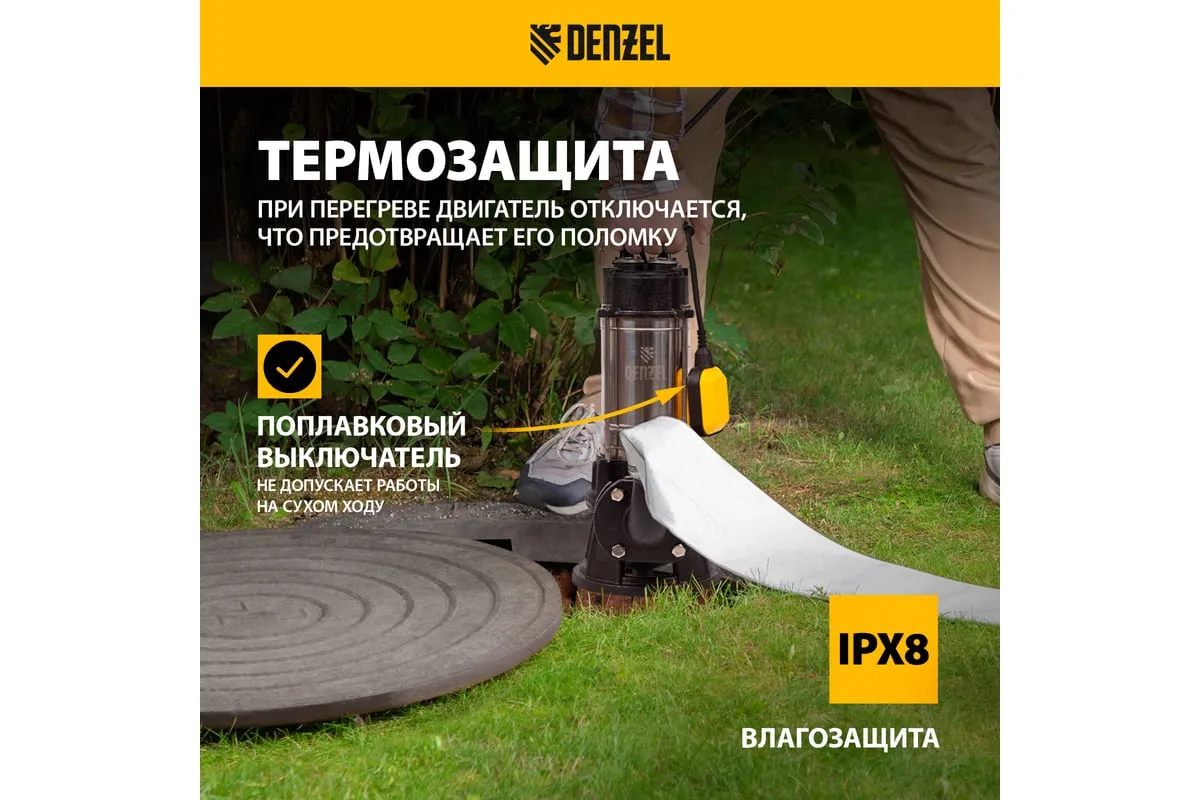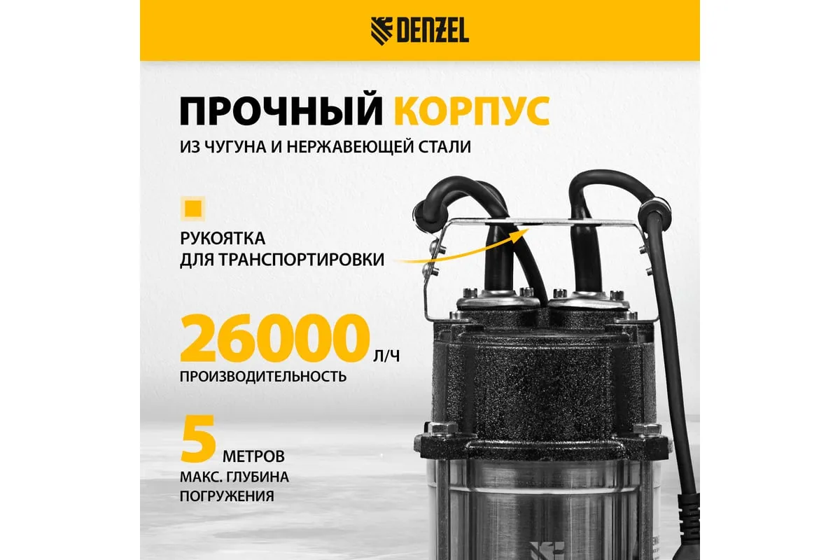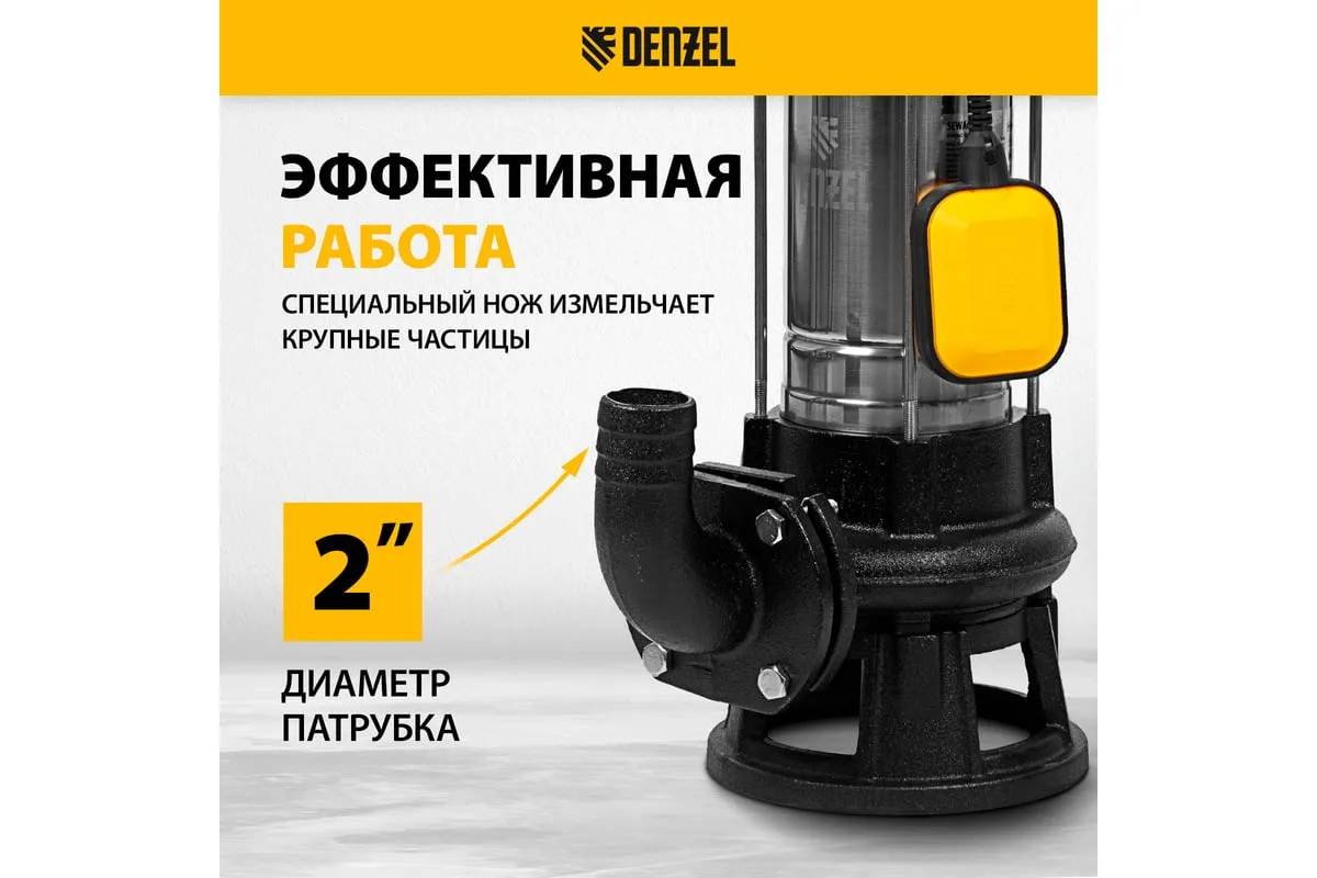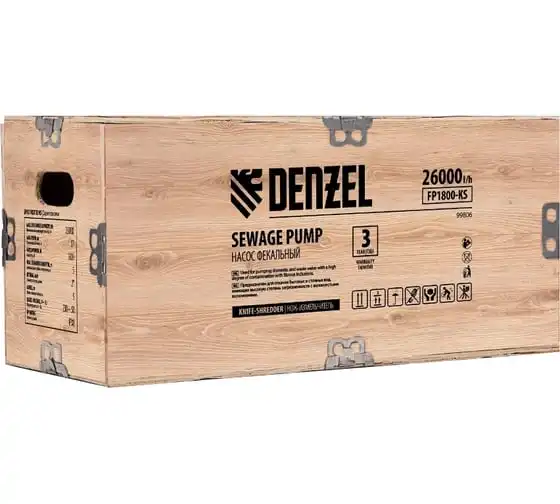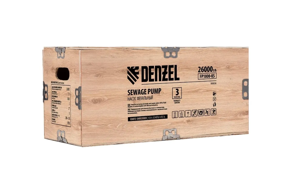 Фекальный насос Denzel FP1800-KS 99806 имеет производительность до 26000 л/ч и применяется для работы как с грязной, так и с чистой водой. Его можно использовать для откачки выгребных ям, емкостей, водоемов, канав, стоков и траншей или осушения затапливаемых помещений.