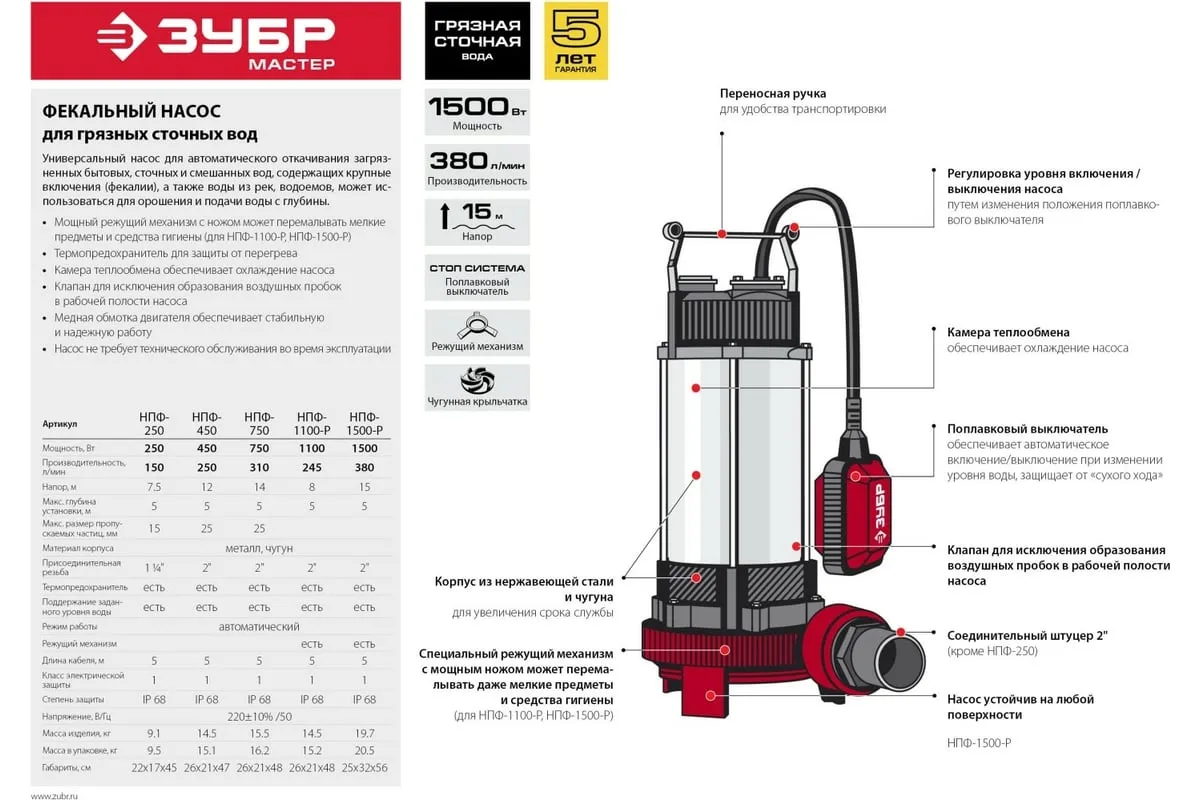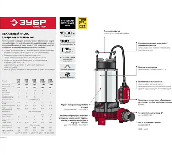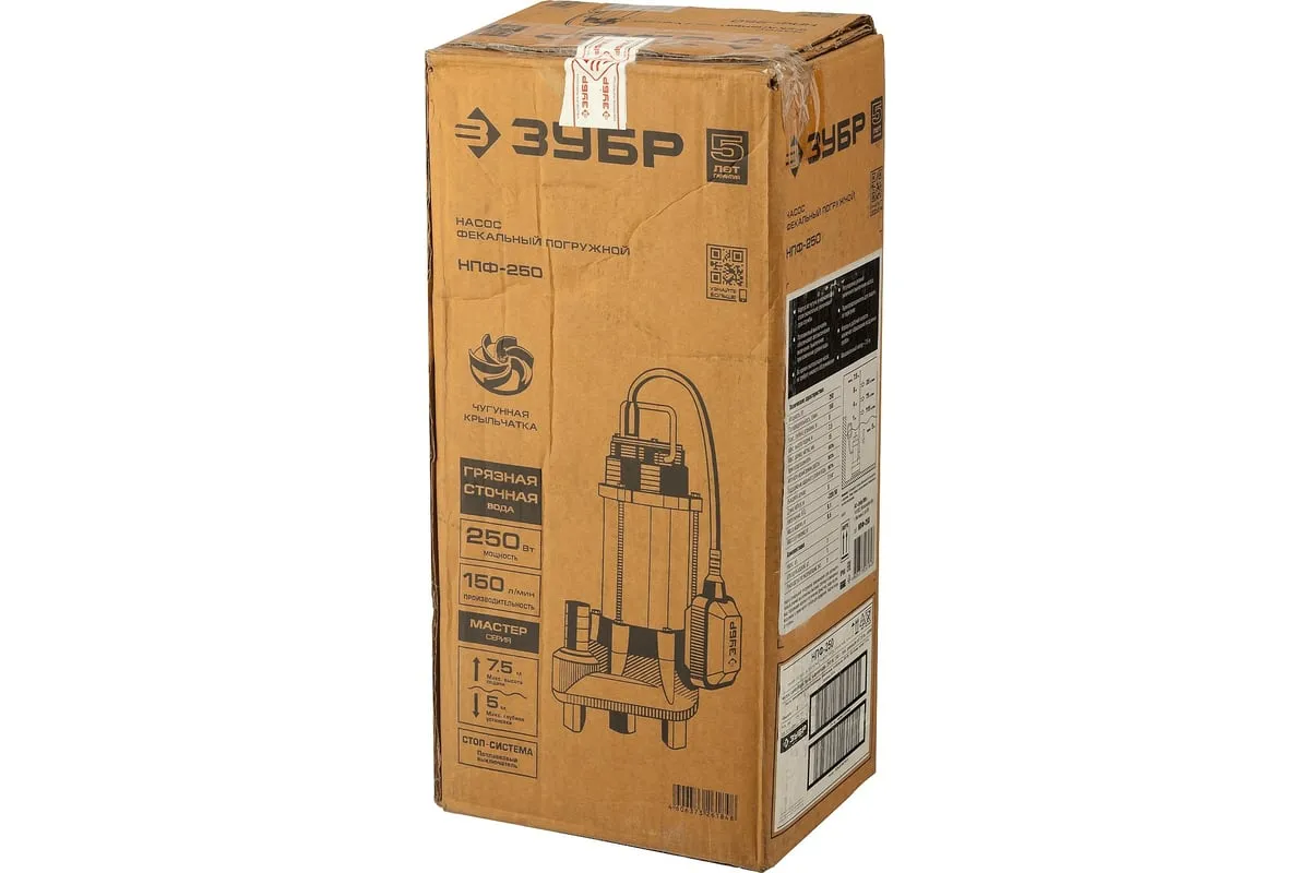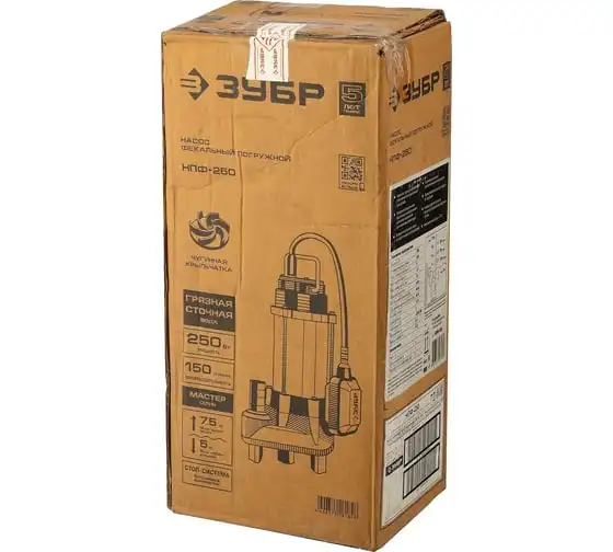 Фекальный погружной насос Зубр НПФ-250 предназначен для откачки грязных и сточных вод с частицами размером до 15 мм. Отличается надежностью и не требует обслуживания. Корпус производится из чугуна и нержавеющей стали. Предусмотрен поплавок и термопредохранитель для защиты от перегрева.