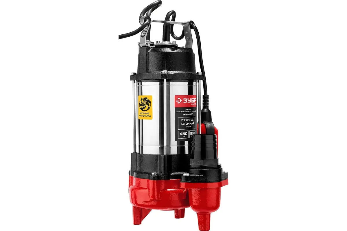 Фекальный погружной насос Зубр НПФ-450 отличается простой и надежной конструкцией. Используется для откачивания воды из выгребных ям, котлованов, сильно загрязненных септиков и подвалов. В состоянии пропускать твердые частицы диаметром до 25 мм. Предусмотрен внешний поплавковый выключатель. Модель может быть использована в агрессивной среде.