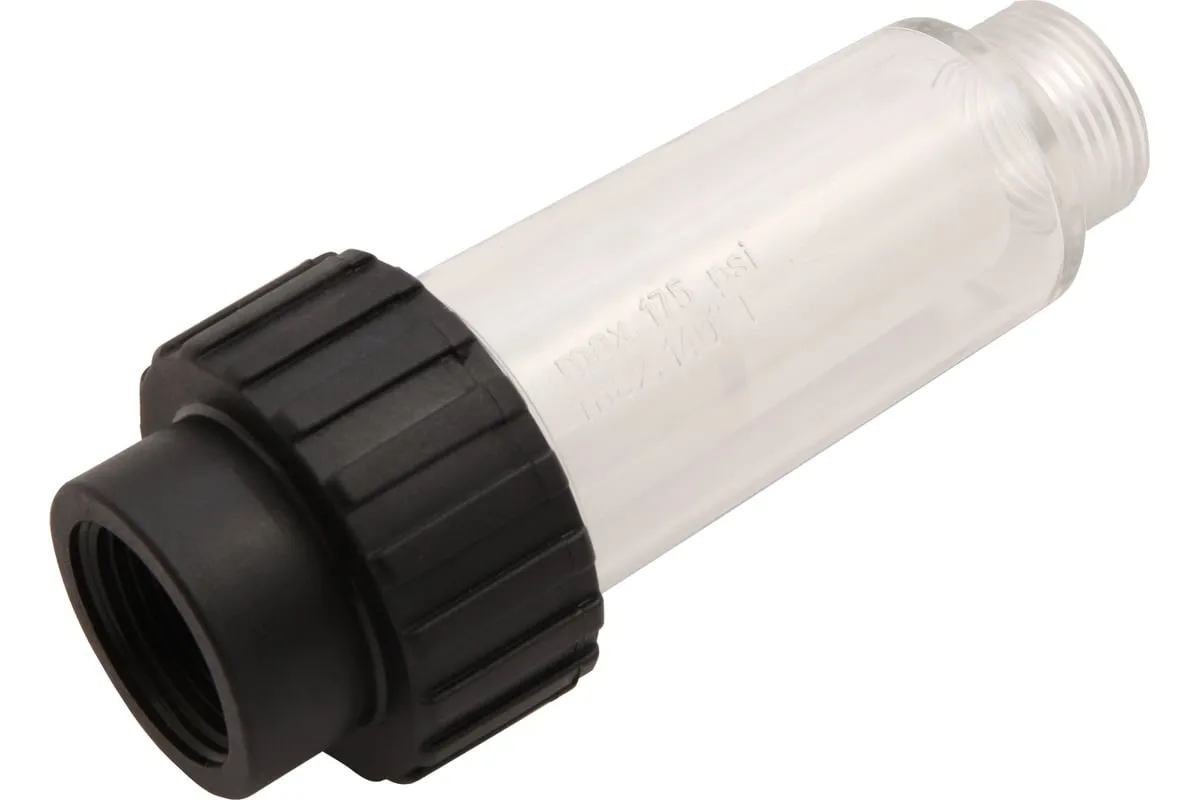 Универсальный фильтр Denzel 58301 используется для очистки воды и защиты от засорения в моечных машинах высокого давления. Он устанавливается на патрубок с соединением G3/4 дюйма на мойках марки Denzel.