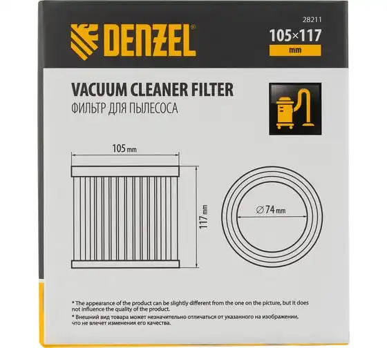 Каркасный складчатый HEPA-фильтр Denzel 28211 совместим со строительными пылесосами SVC15 (28201), LVC15 (28291). Устанавливается на корпус фильтра пылесоса и используется для проведения сухой уборки. Имеет класс фильтрации L, успешно справляется с частичками лака, краски, искусственного камня и т.п.