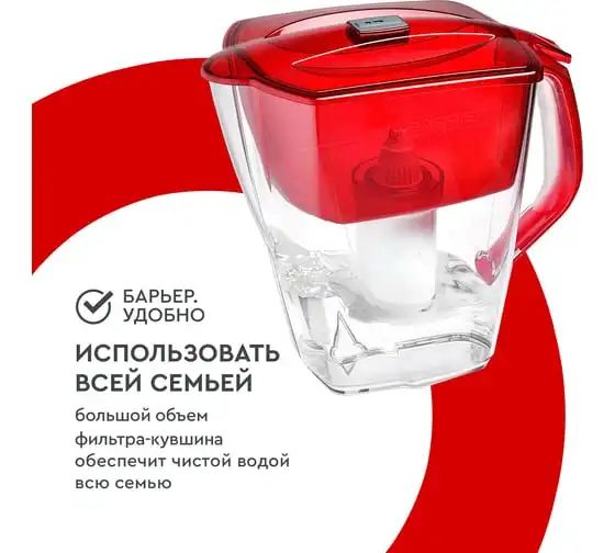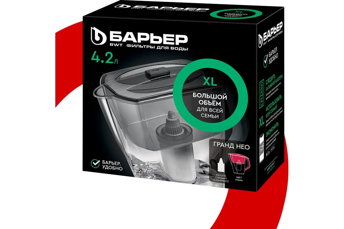 Фильтр-кувшин Барьер ГРАНД НЕО рубин В013Р00 классической формы с механическим индикатором ресурса.