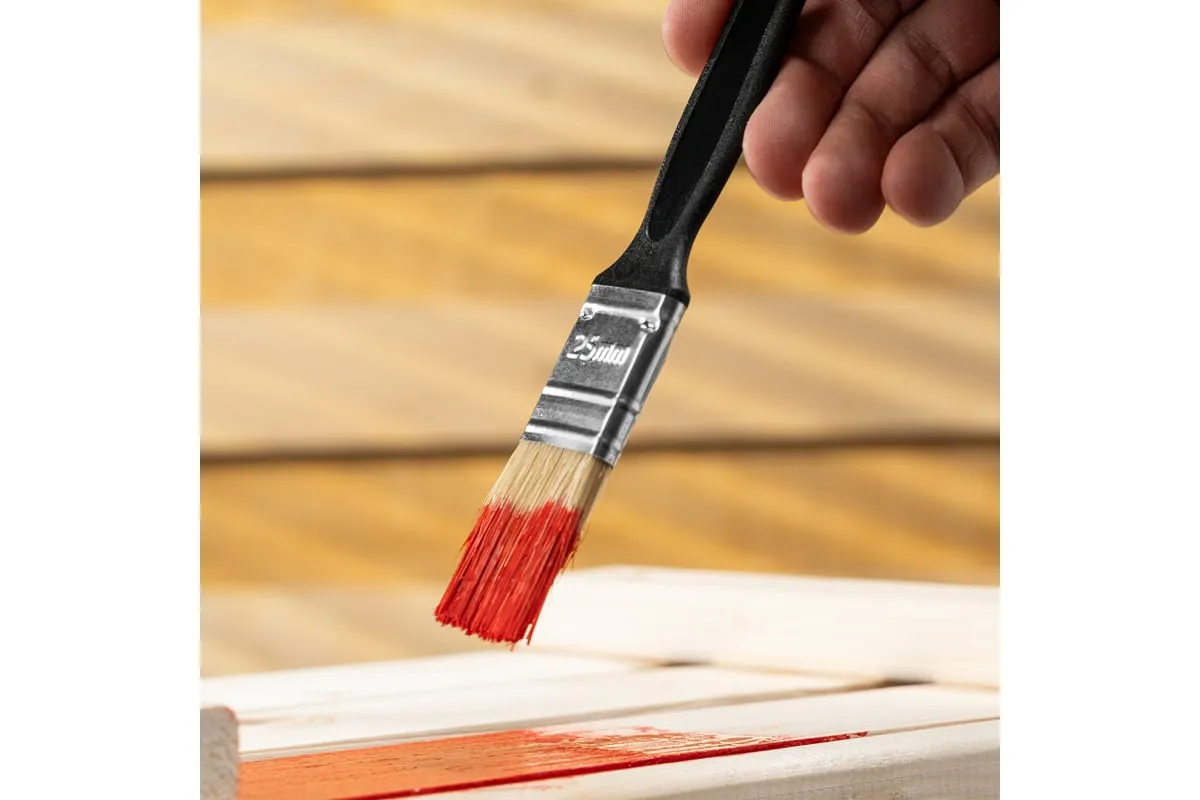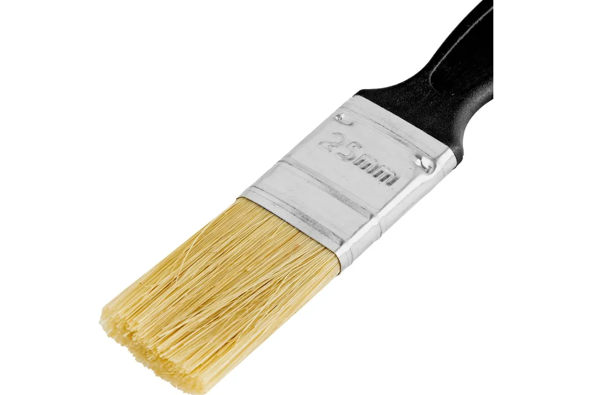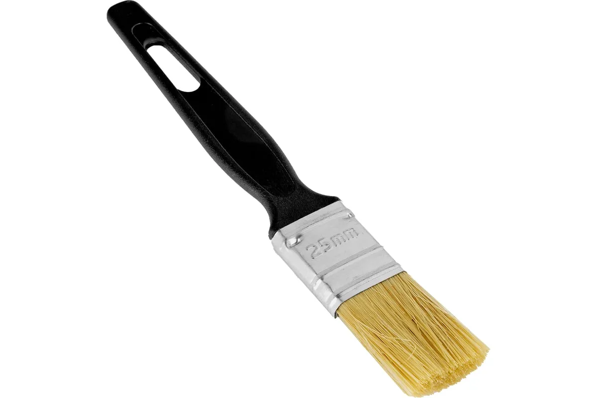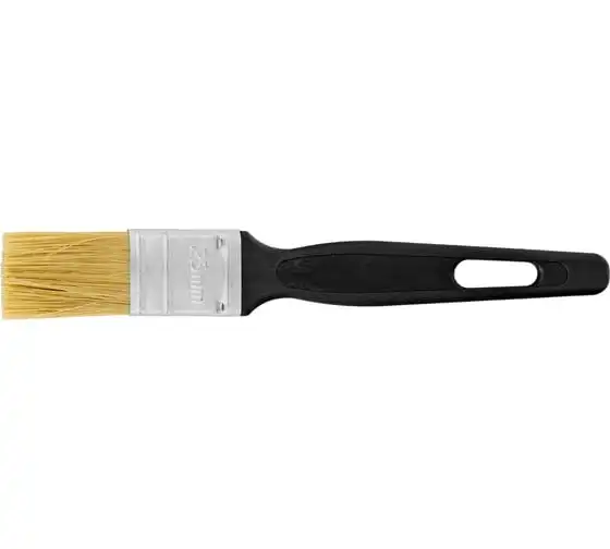 Флейцевая кисть Сибртех «Стандарт» 82502, 25*6, с натуральной щетиной и пластиковой ручкой оптимально подходит для финишной обработки поверхностей и устранения мелких дефектов после использования кистей с более жесткой щетиной. Кисточкой небольшой ширины удобно окрашивать углы, мелкие детали, плинтуса и рамы. Рабочая часть выполнена из свиной щетины с добавлением искусственной, таким образом достигается ее высокая износостойкость и устойчивость к растворителям.