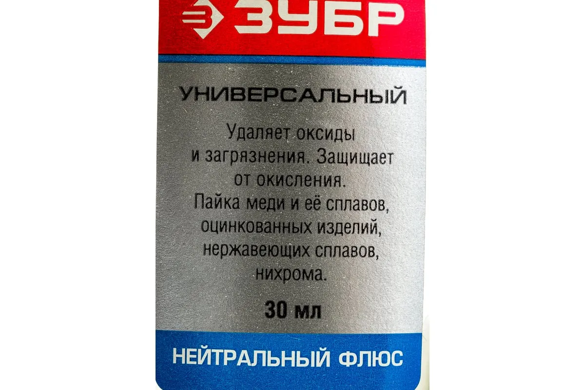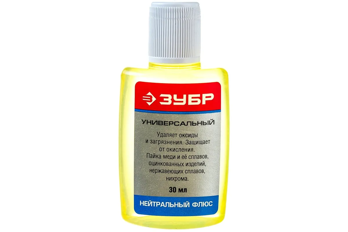 Флюс универсальный Зубр 55494-030 применяется для пайки оксидированных деталей из медных сплавов без предварительной зачистки.