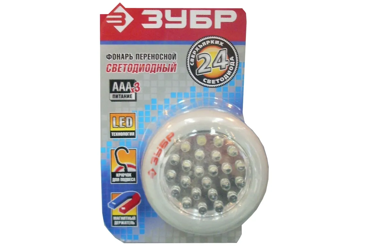 Светодиодный фонарь ЗУБР 61812 сделан по технологии LED. Он имеет 24 ярких светодиода, которые обеспечивают яркий свет без мерцаний. Благодаря небольшому весу и малым габаритам фонаря, его можно брать с собой, он не займёт много места.