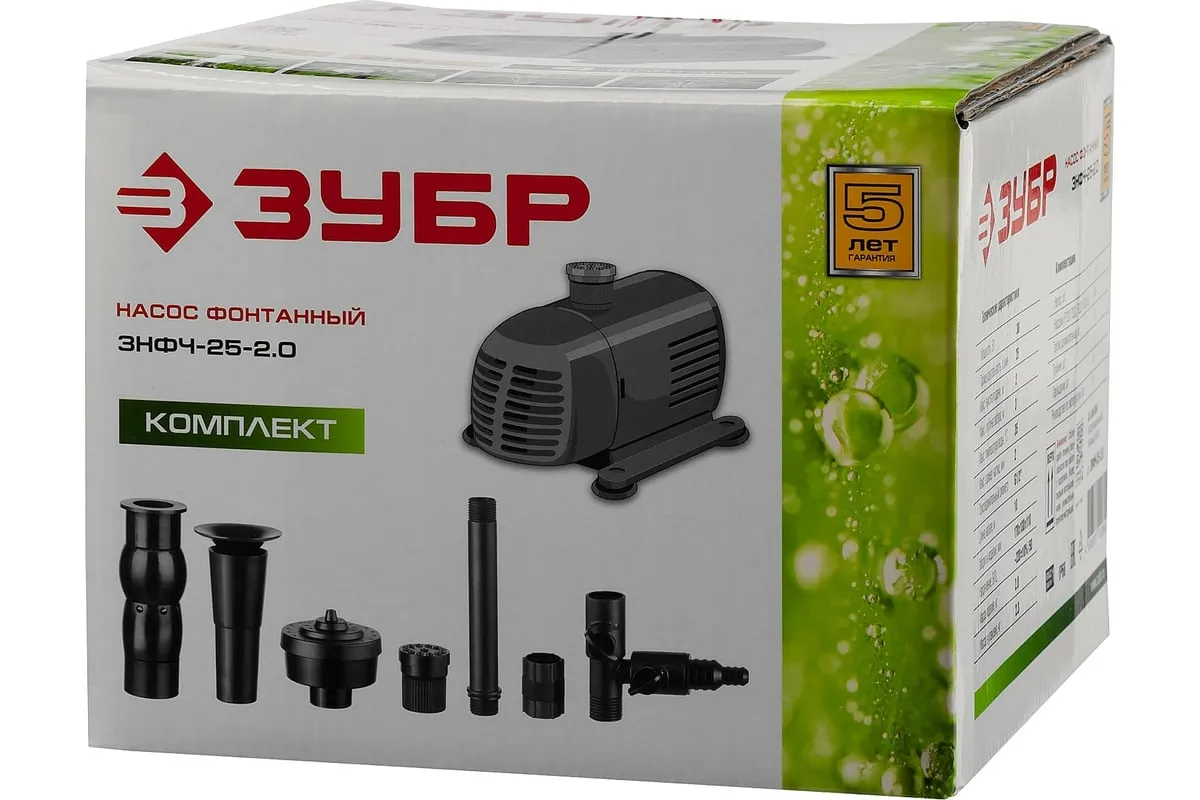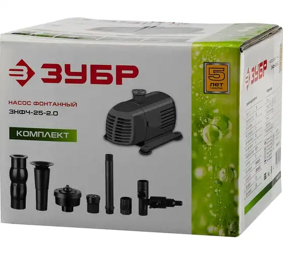 Фонтанный насос Зубр ЗНФЧ-25-2.0 предназначен для украшения садового пруда или искусственного водоема. Рекомендуется для перекачивания чистой жидкости. На входе установлен губчатый фильтр, который предотвращает попадание твердых включений в механизм. При помощи удлинительной трубки можно отрегулировать высоту основания фонтана. Максимальная глубина установки насоса - 3 метра.