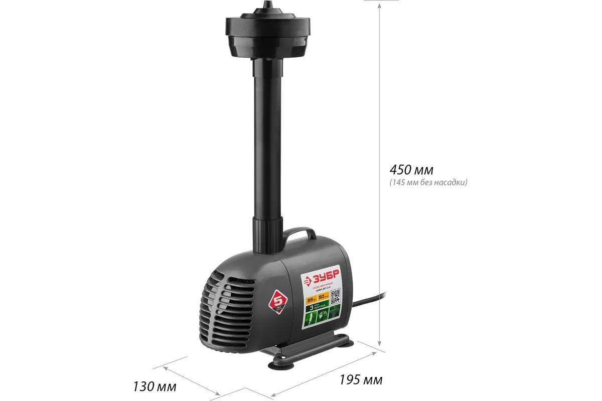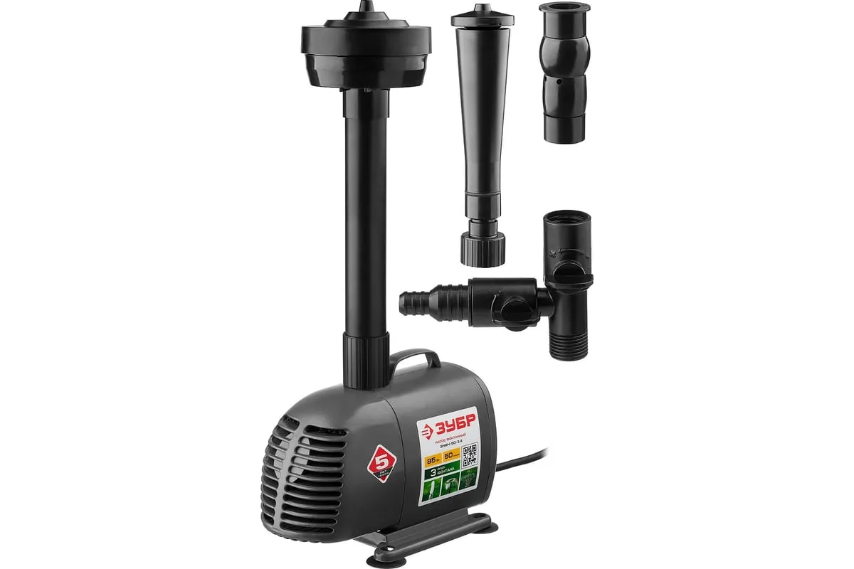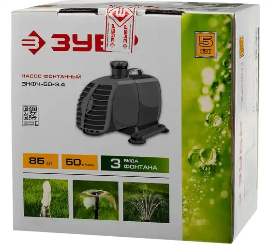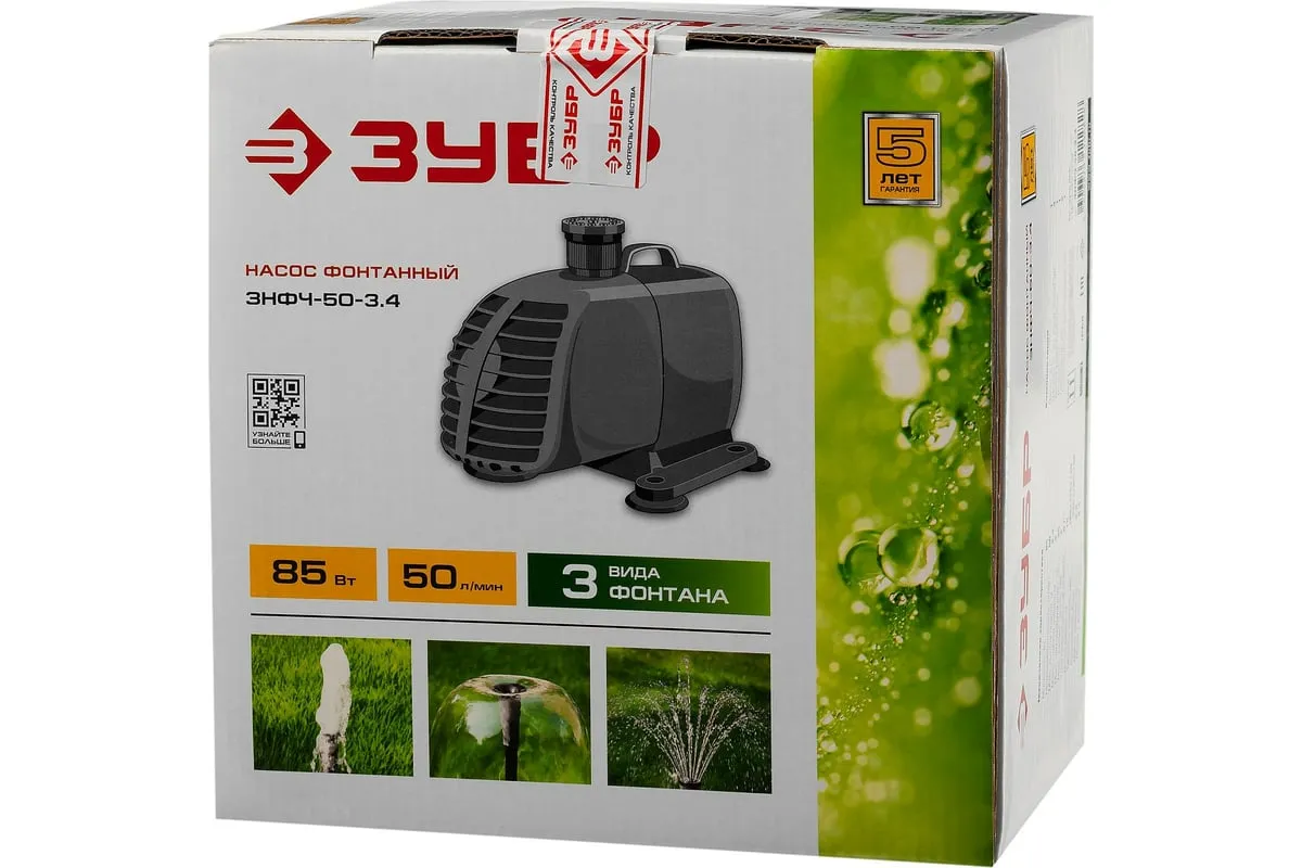 Фонтанный насос Зубр ЗНФЧ-50-3.4 предназначен для организации мини-водопада или фонтана в саду. Максимальная глубина установки насоса составляет 3 метра. В комплект поставки входят четыре насадки для получения различных типов струи. Удлинительная трубка в комплекте позволяет отрегулировать высоту основания фонтана. В конструкции предусмотрен губчатый фильтр, который предотвращает попадание твердых частиц внутрь механизма. Корпус выполнен из прочного пластика.