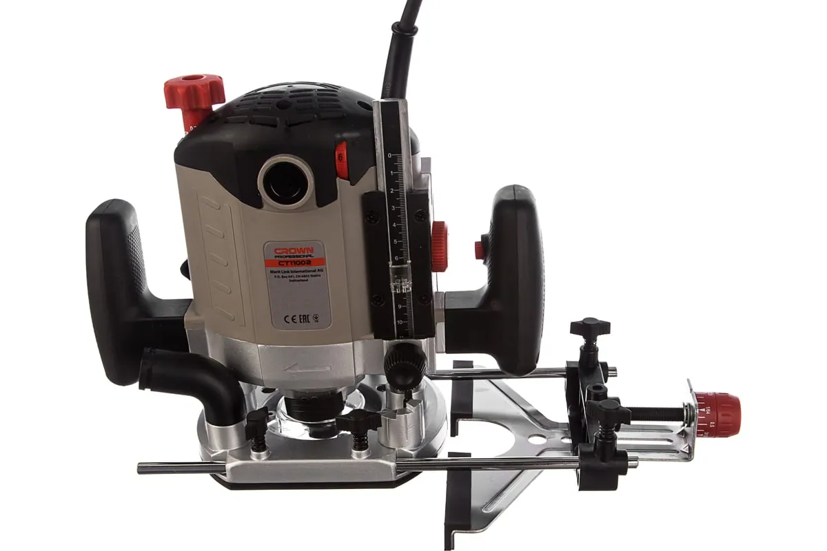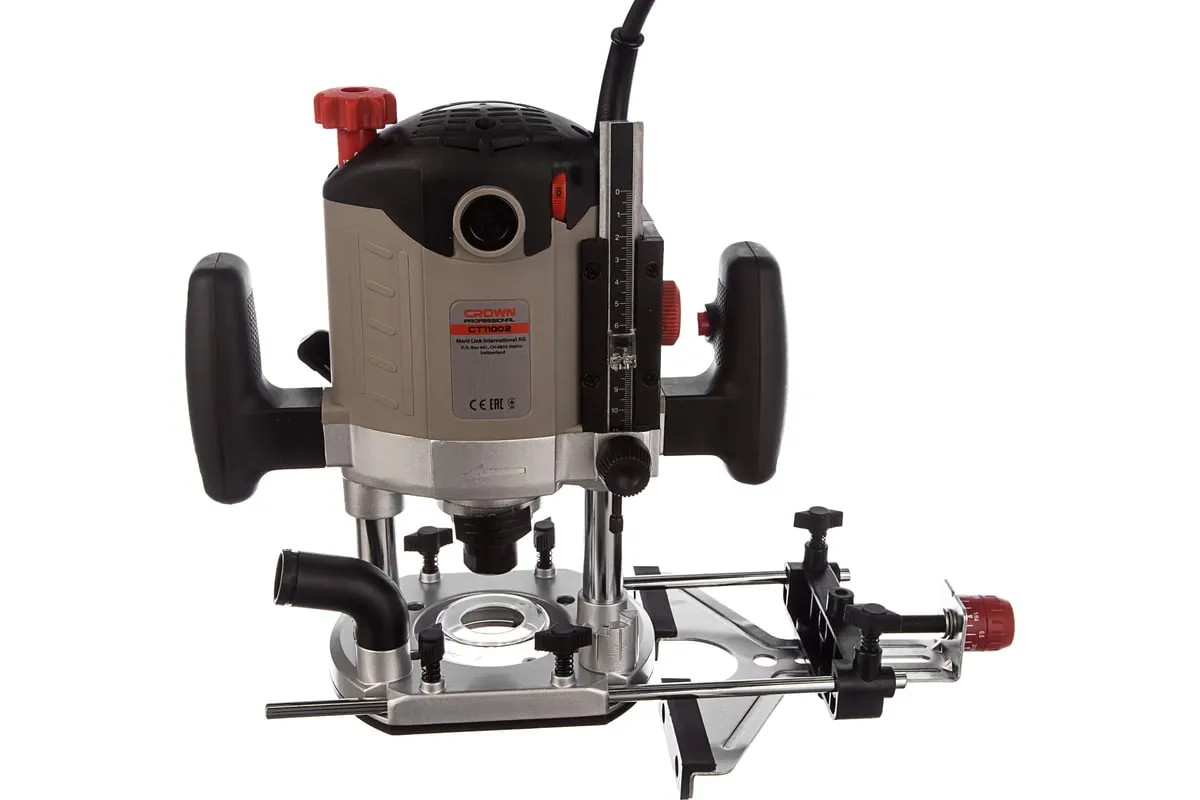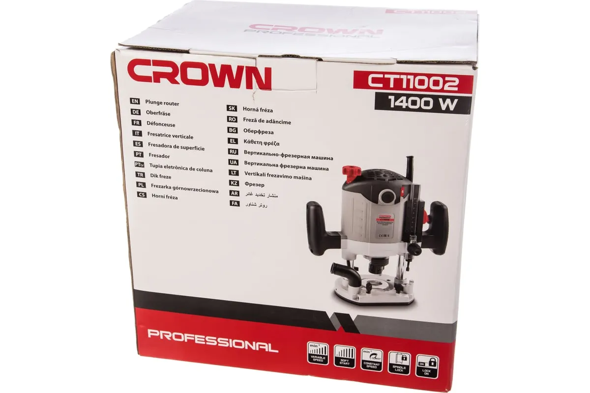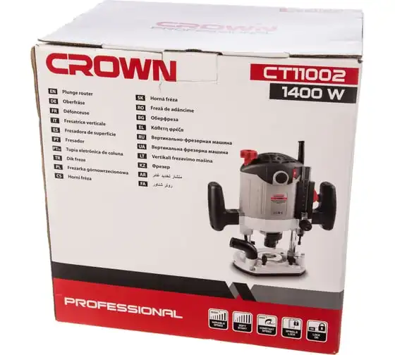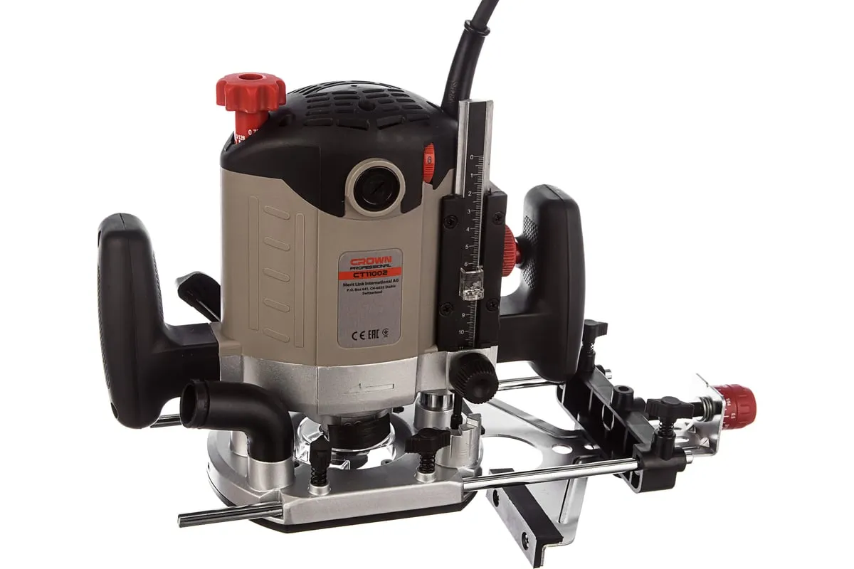 Фрезер по дереву CROWN CT11002 оснащен мощным двигателем 1400 Вт и обладает функцией плавного пуска для комфортной работы.