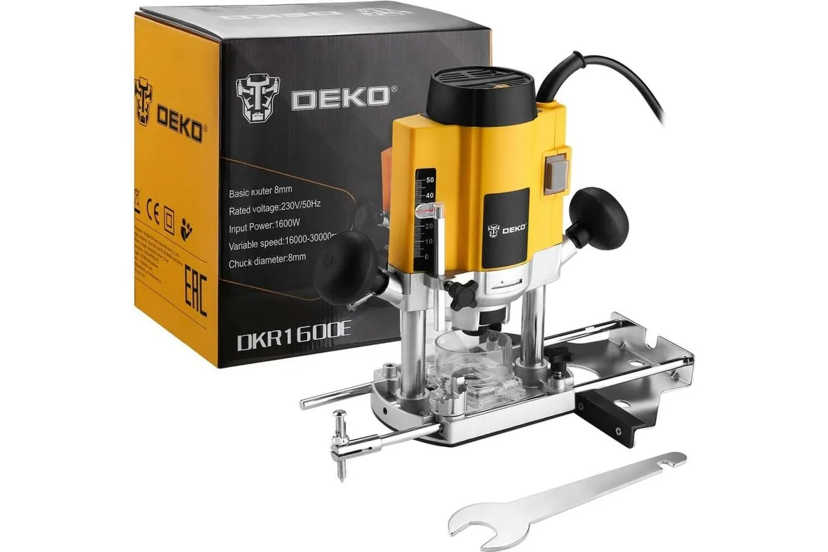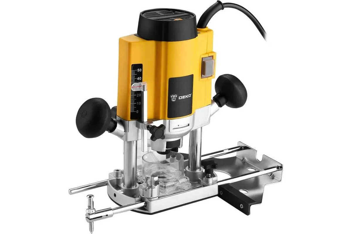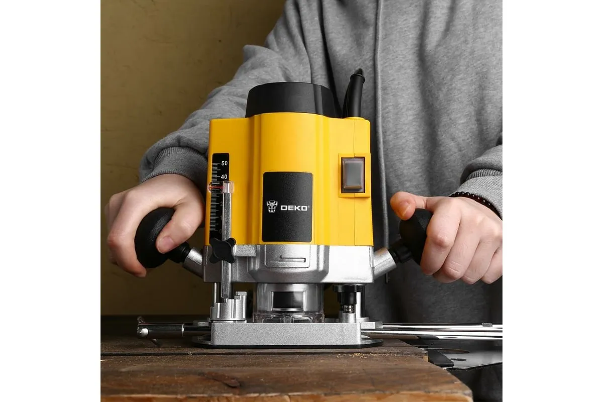 Фрезер DEKO DKR1600E применяется в различных столярных и плотницких работах для обработки кромок и профилей, фасок в деревянных конструкциях, для изготовления пазов и т.д. Рукоятки с нескользящими накладками способствуют надежному и комфортному хвату инструмента. Линейка, расположенная в боковой части корпуса, обеспечивает точную регулировку глубины фрезерования. Инструмент можно настроить на выполнение определенной задачи путем изменения числа оборотов.