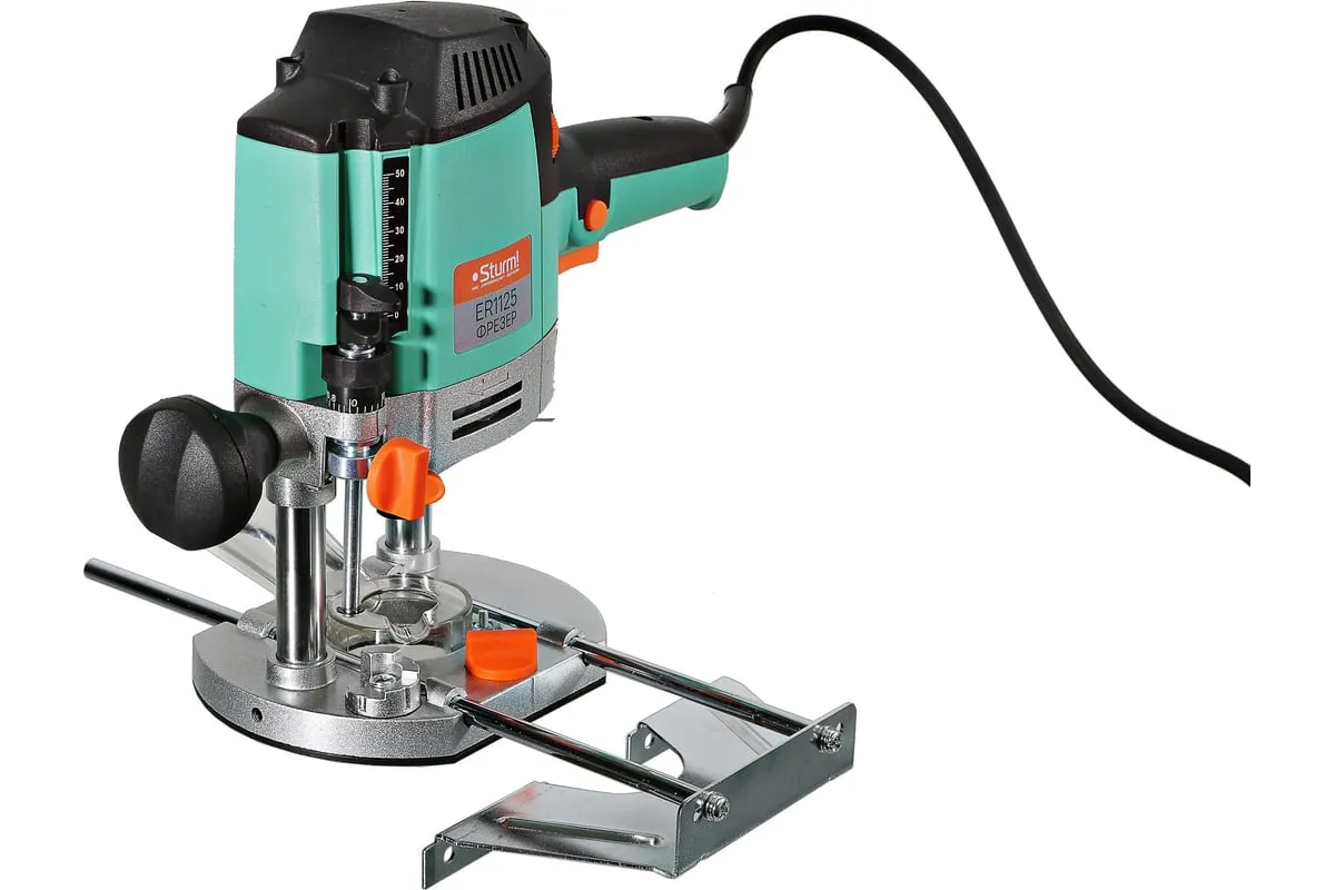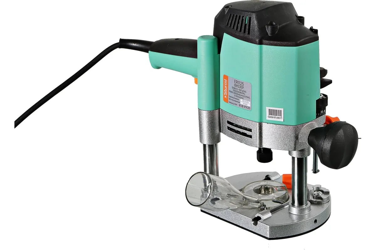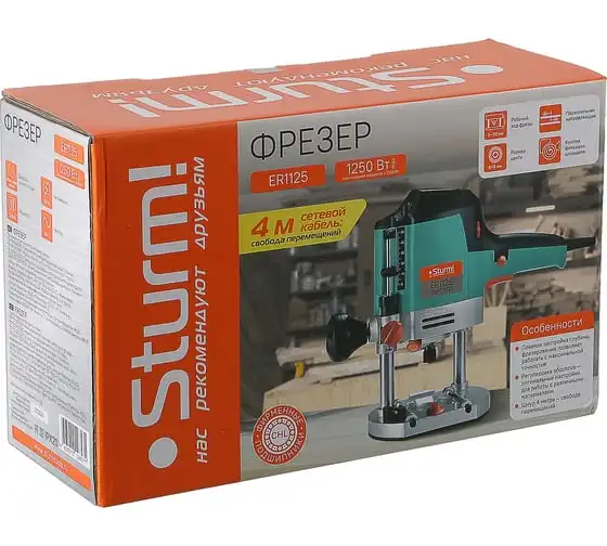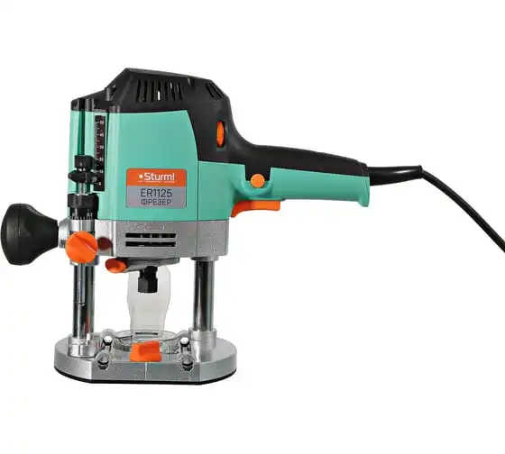 Фрезер Sturm ER1125 — маневренный, многофункциональный электроинструмент для всех видов фрезерования: продольного, фигурного, по шаблону, по радиусу заготовок из различных материалов.