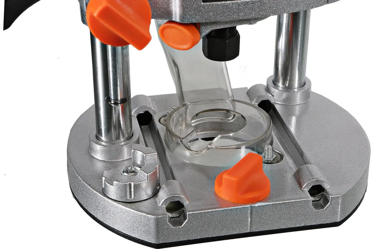 Для облегчения процедуры смены оснастки сподручно использовать кнопку фиксации шпинделя. В целях ровного движения вдоль кромки полезно применять точно настраиваемый параллельный упор, идущий в комплекте. Фирменные подшипники CHL поддержат надежную и длительную эксплуатацию электроинструмента.