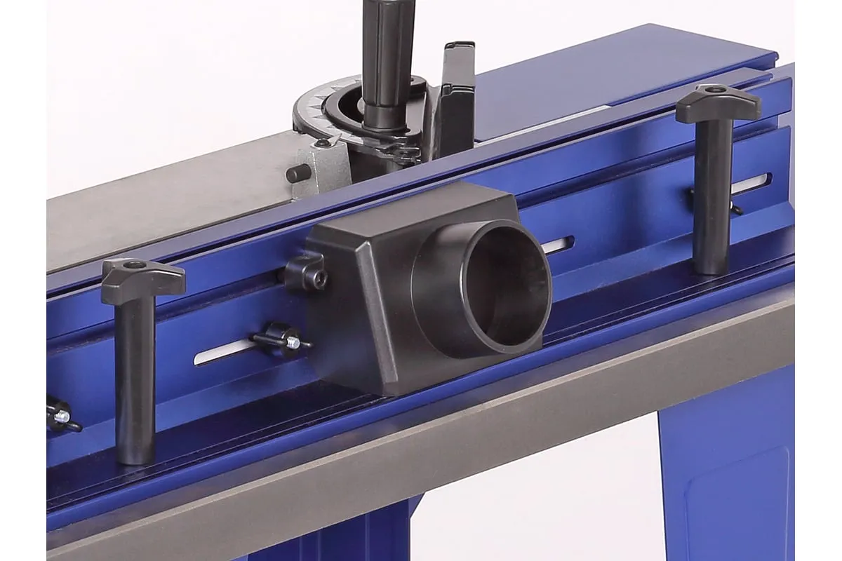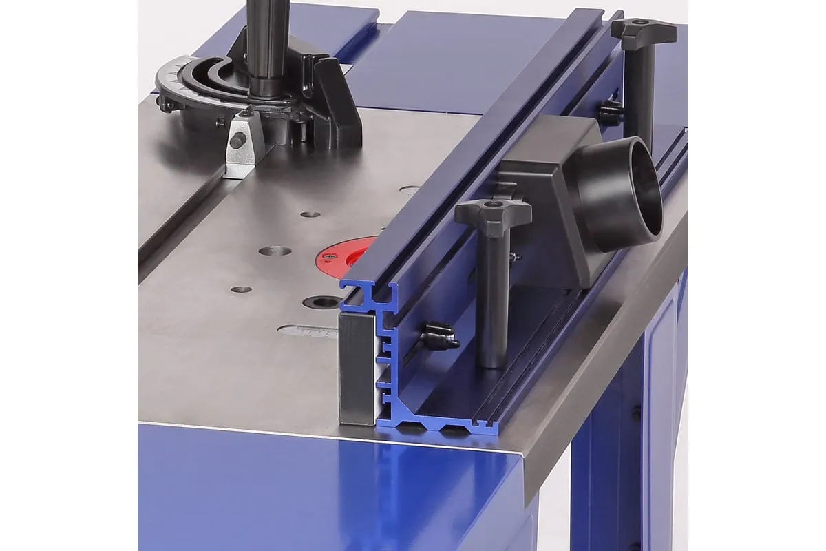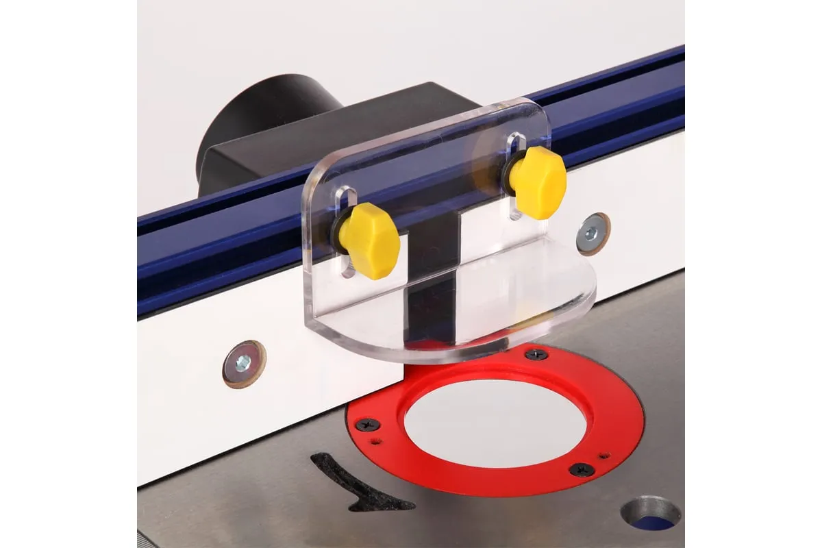 Упор имеет основание, изготовленное из высокоточного алюминиевого профиля. Оснащен двумя раздвижными накладками из МДФ размером 290×63 мм каждая (Д×В), фиксирующиеся гайками-барашками. Ход накладки составляет 52 мм. Общая высота упора - 80 мм. Длина упора с максимально разведенными в обе стороны щечками - 705 мм. На верхней части упора имеется два специальных паза под установку защитного экрана и прижимов (в комплект поставки не входят).