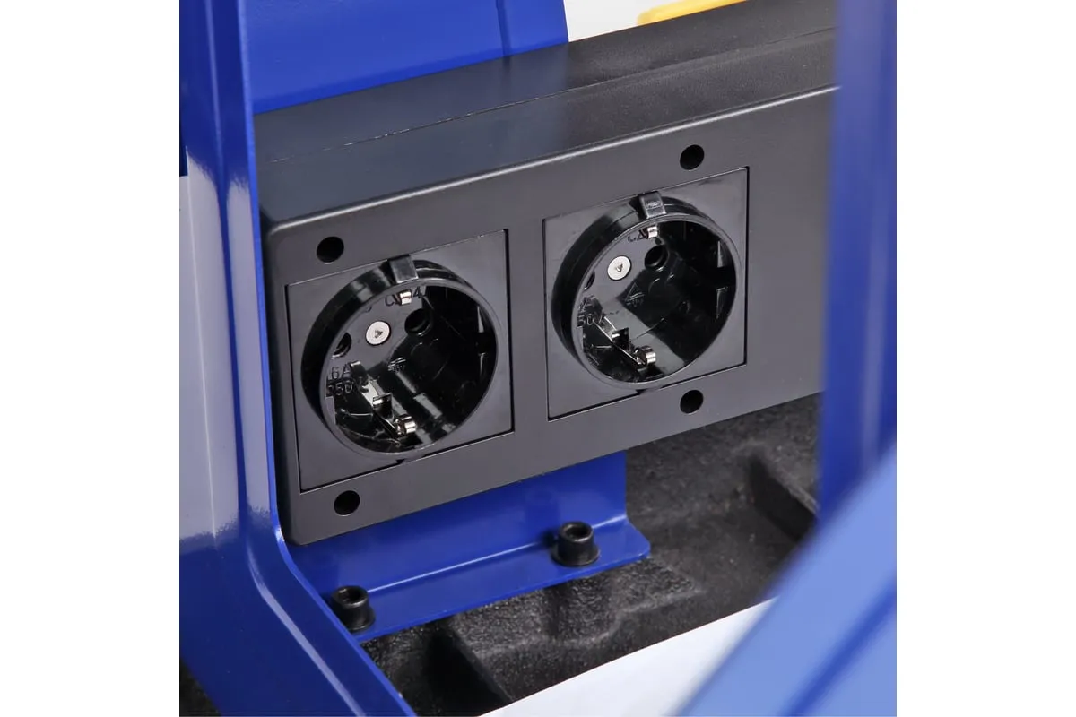 Рабочая поверхность составная - 1150×400 мм. Основной стол из чугуна. По бокам от него крепятся два удлинения по 250 мм из листовой стали. Имеются отверстия под установку упора и пластин.