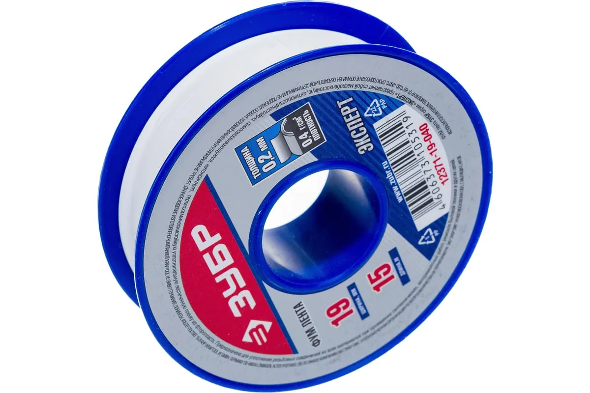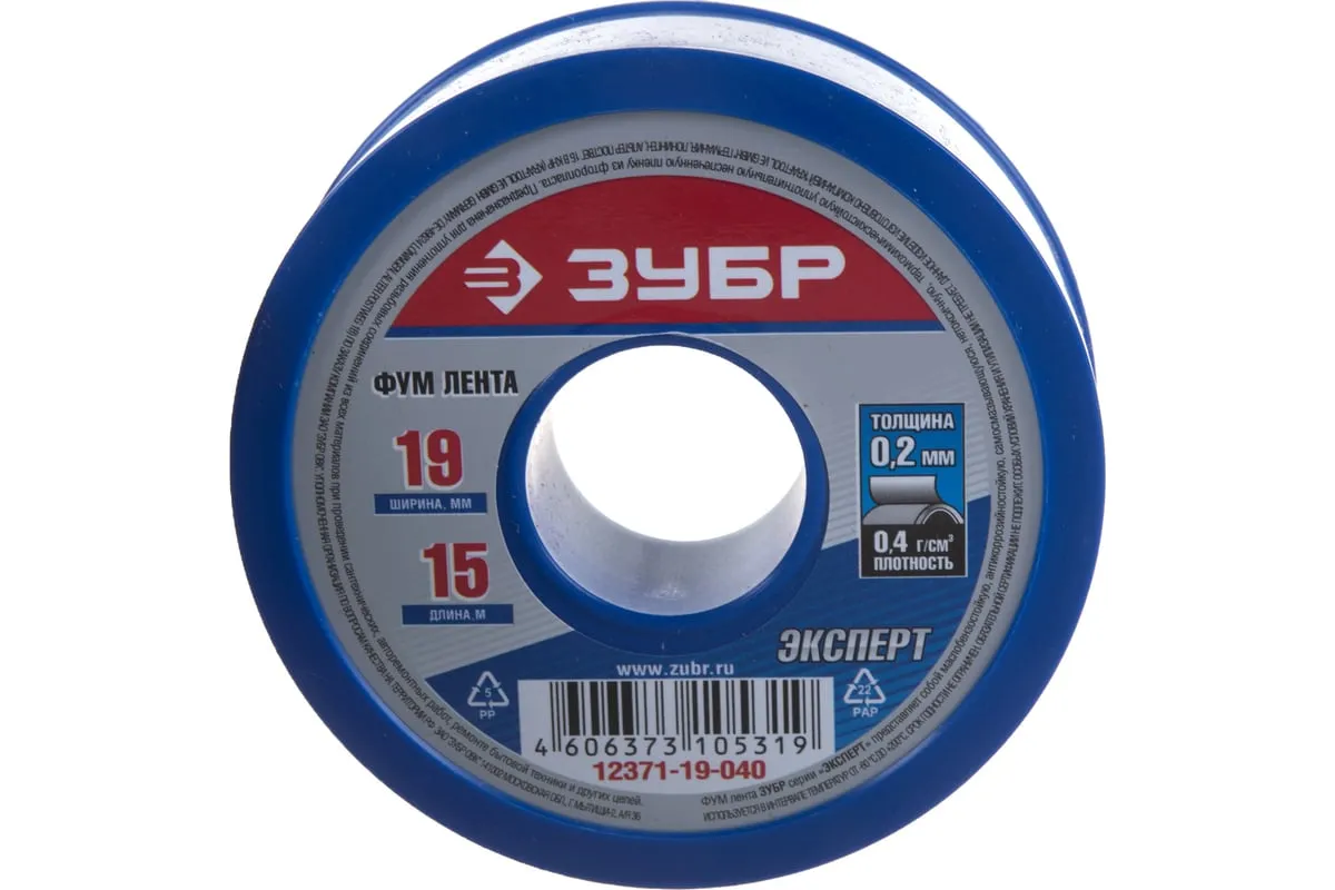 Фумлента ЭКСПЕРТ Зубр 12371-19-040 используется для герметизации и уплотнения резьбы при ремонте техники, автомобильных работах или установке трубопроводных систем водоснабжения. Изготовлена из экологически безопасного фторопласта. Устойчива к ржавчине, влиянию бензина, масел и т.д. Лента применяется при температуре от -60 до +200 C°. Плотность фумленты — 0.40 г/см3.