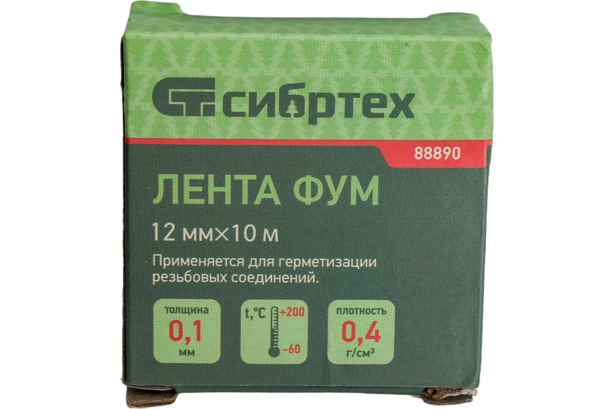 Фумлента Сибртех 88890 размером 12 мм х 10 м используется при проведении сантехнических работ для герметизации разъемных соединений. Используется при монтаже пластиковых, металлических и металлопластиковых труб для воды.
