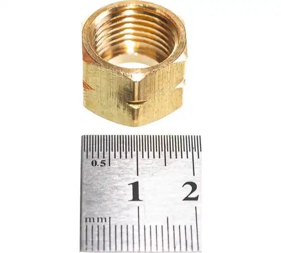 Гайка накидная М16 левая КЕДР 1220009 применяется для присоединения газовых рукавов, штуцеров и ниппелей к различному газовому оборудованию. Материал латунь.