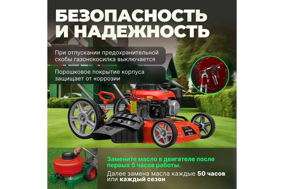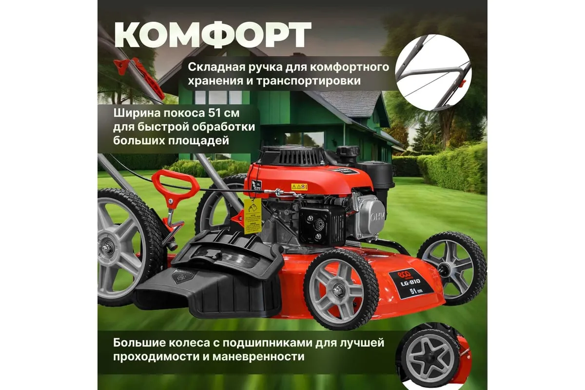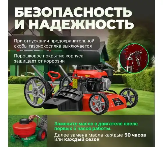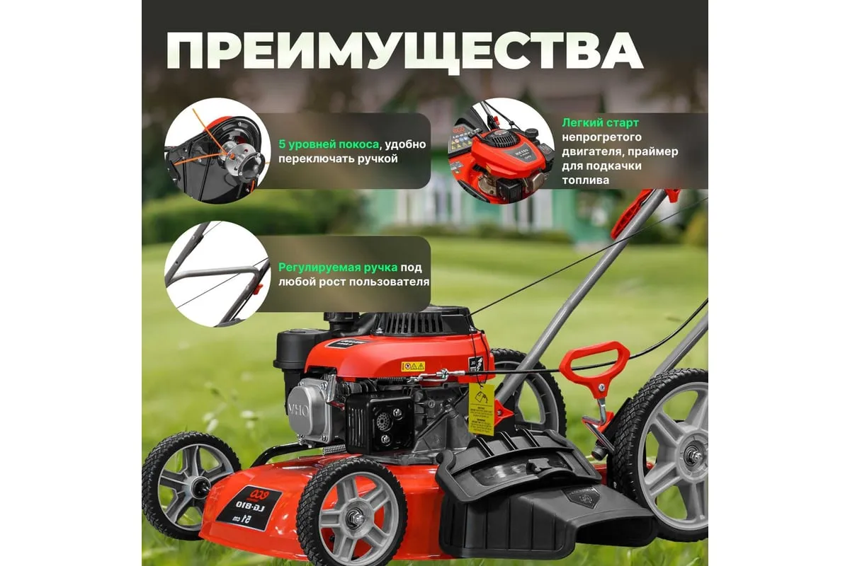 Ширина кошения составляет 51 см, что позволяет быстро и равномерно обрабатывать большие площади. Кроме того, газонокосилка оснащена функцией мульчирования, которая позволяет измельчать траву и использовать ее в качестве натурального удобрения для вашего газона.