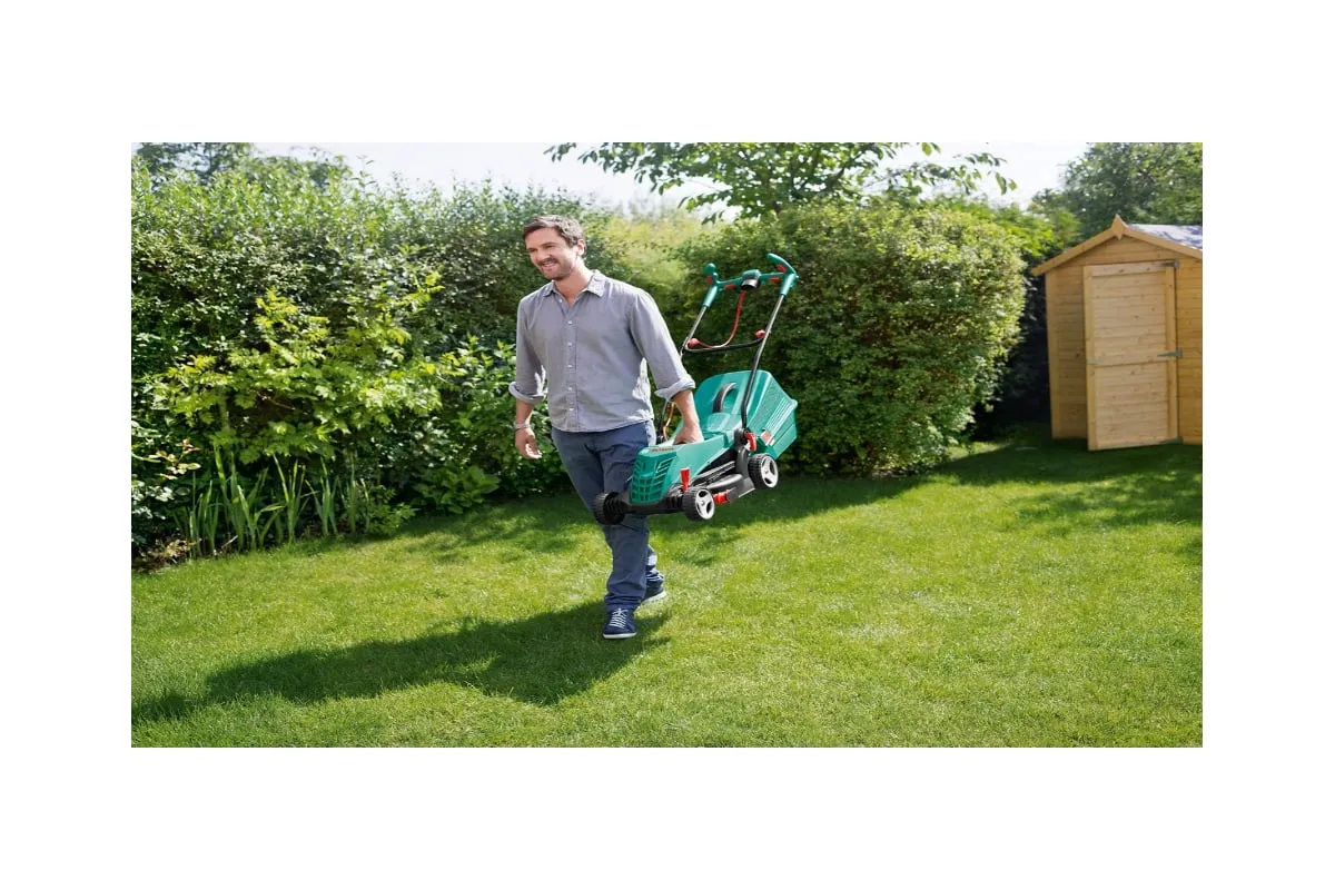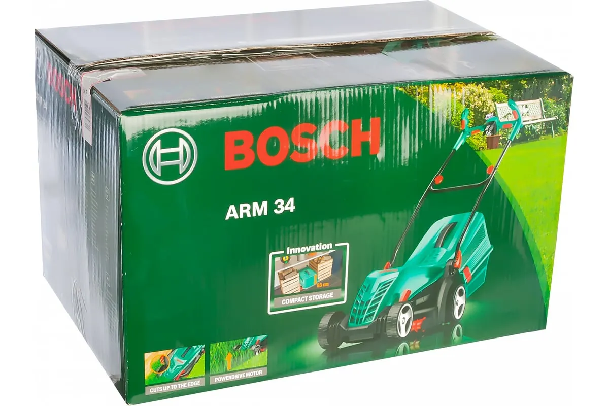 Газонокосилка Bosch ARM 34 0.600.8A6.101 - агрегат для стрижки газона площадью до 400 м2. Ширина захвата составляет 34 см. Благодаря инновационным направляющим возможна стрижка травы вблизи стен или клумб. Высота скоса варьируется от 20 до 70 мм. Рукоятка складывается вдвое, что удобно при хранении и транспортировке агрегата. Травосборник рассчитан на 40 литров отходов.