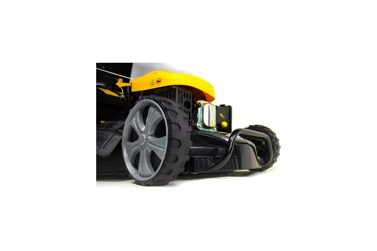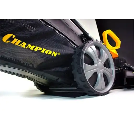 Газонокосилка CHAMPION LM5345 представляет собой производительный агрегат для ухода за большими по площади газонами. Она имеет 3 режима работы: сбор отходов в травосборник, боковой/задний выброс и мульчирование (измельчение) для дальнейшего удобрения почвы. Регулировать высоту кошения можно с помощью центрального рычага в диапазоне 25-75 мм. Широкий профиль колес не оставляет следов на только что скошенном участке газона.