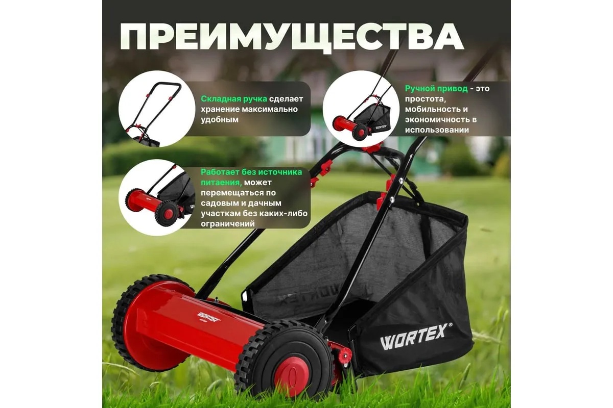 Газонокосилка механическая WORTEX предназначена для покоса травы путем среза растительности на заданную пользователем высоту. С ее помощью удается быстро и качественно преобразить приусадебный участок. Газонокосилка оснащена удобной складной ручкой, которая сделает хранение инструмента максимально удобным.