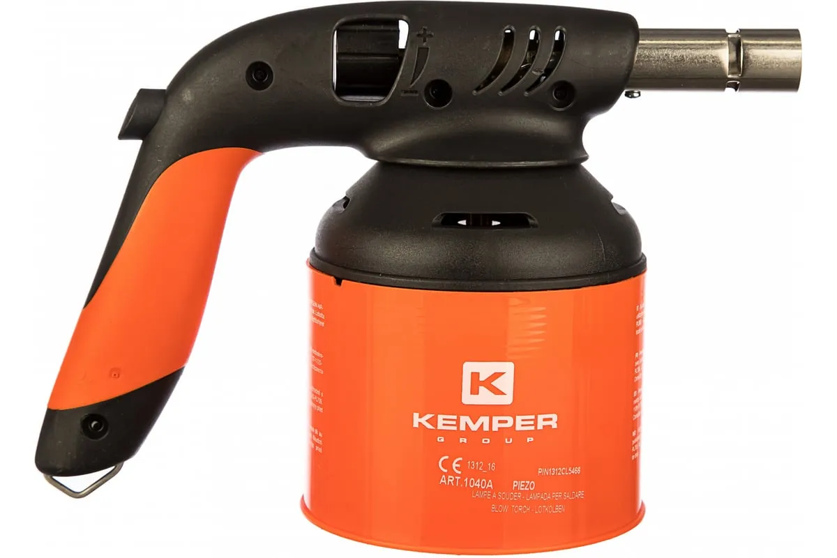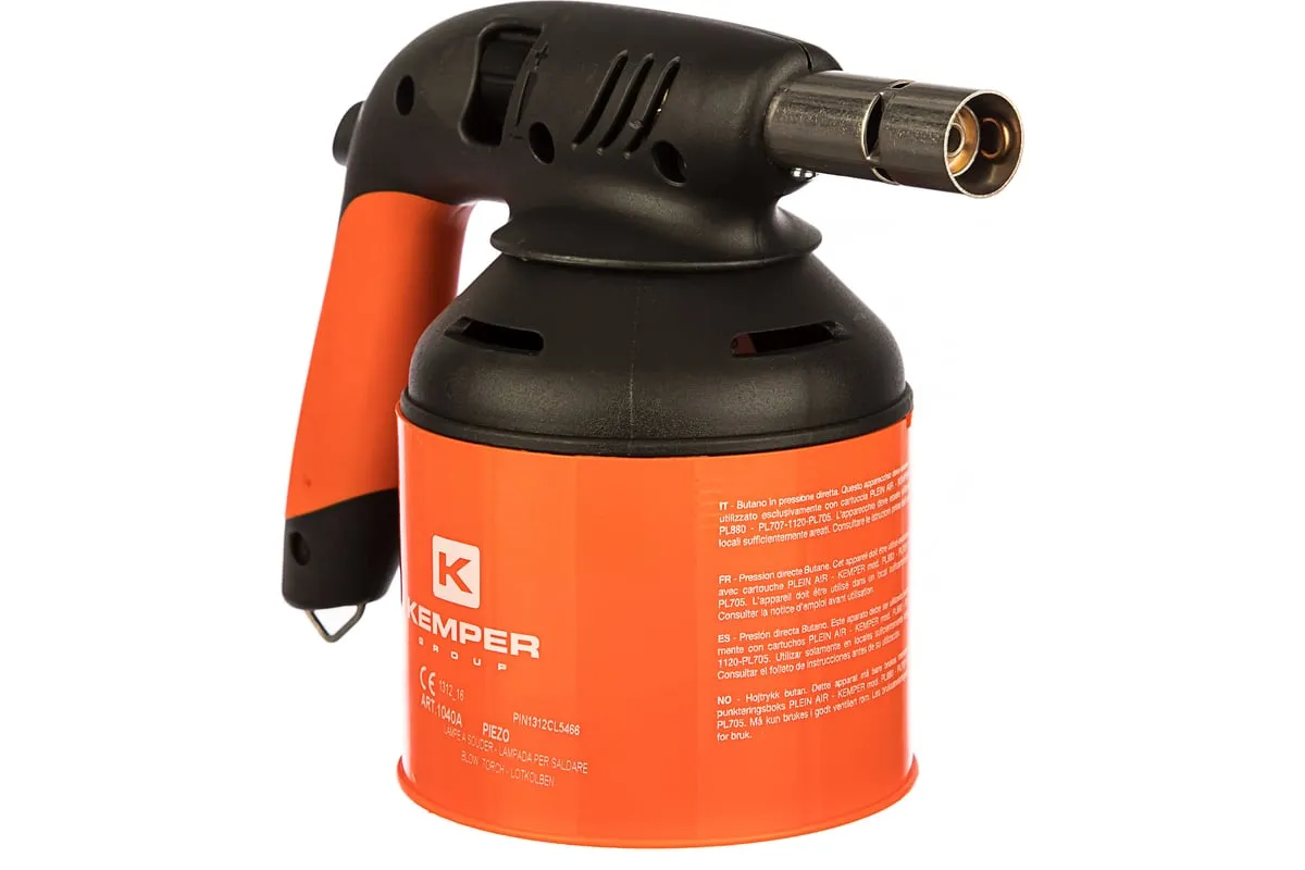 Газовая паяльная лампа KEMPER 1040A подходит для выполнения различных видов работ, например: нагрева поверхностей для удаления старого лакокрасочного слоя, разогрева резьбовых соединений, пайки медных труб, термоусадки, розжига мангалов и т. д. Устройство оснащено системой пьезоподжига, функцией дополнительного нагрева газа, регулятором пламени, а также обеспечивает возможность подачи воздуха.