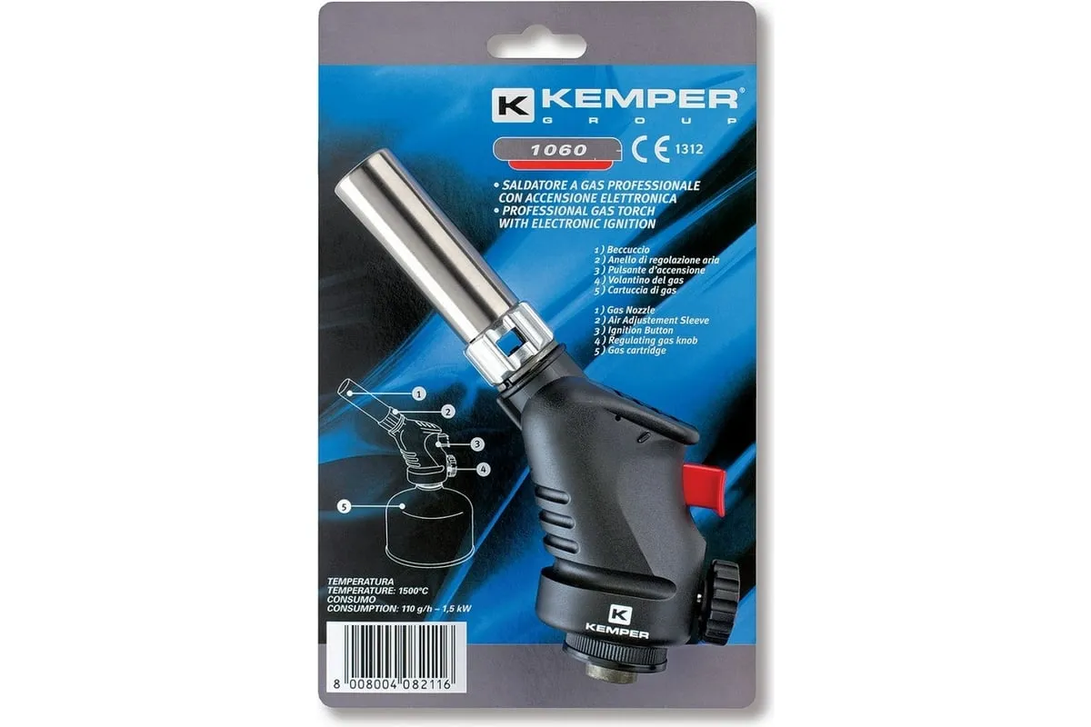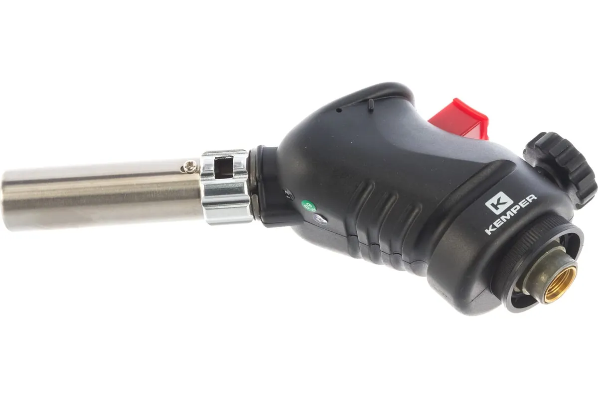 Газовая паяльная лампа KEMPER 1060 имеет систему пьезоподжига и функцию нагрева газа. Оснащена регулятором пламени и кнопкой подачи воздуха. Конструкция лампы отличается эргономичной формой. Корпус выполнен из легкого и надежного материала. Использование клапанного баллона позволяет отсоединять лампу для безопасности при транспортировке и хранении.