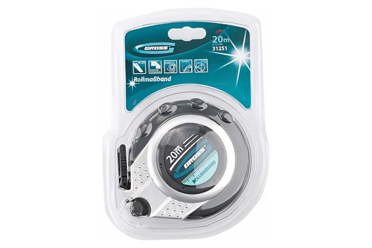 Геодезическая рулетка Gross Rollmassband 31251 в закрытом корпусе, с металлической лентой 20 м х 13 мм с нейлоновым покрытием, используется для определения расстояний и размеров различных объектов. Механизм заключен в двухкомпонентный закрытый корпус из пластика и термостойкой резины, поэтому рулетка устойчива к повреждениям в результате случайных ударов и падений. Комбинированный зацеп упрощает фиксацию измерительной ленты на измеряемой поверхности. Инструмент будет полезен на строительной площадке или земельном участке, а также при проведении обмеров внутри помещений.