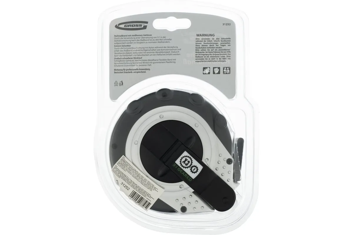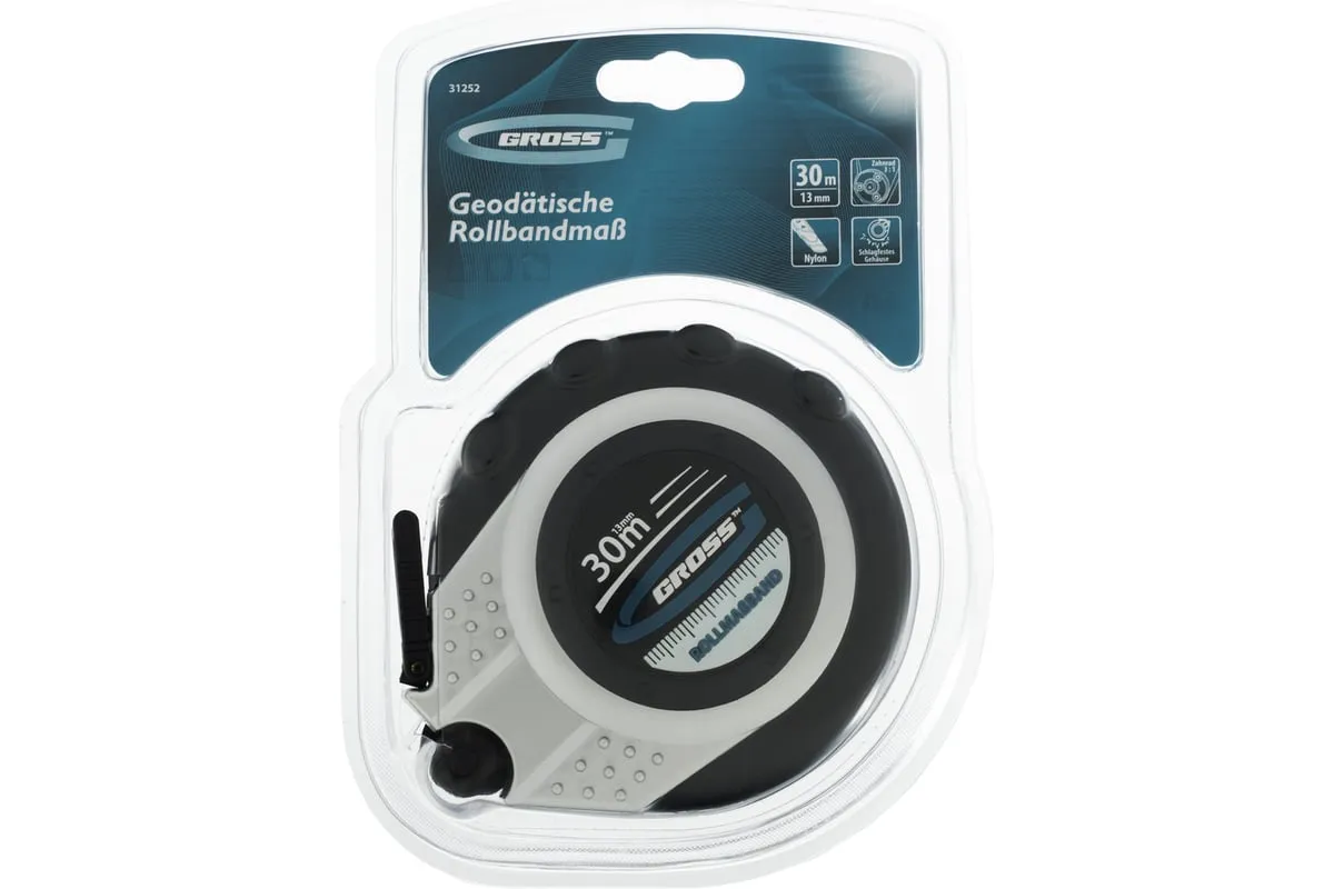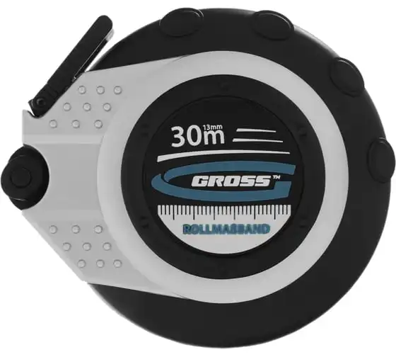 Геодезическая рулетка Gross Rollmassband 31252 в закрытом корпусе, с металлической лентой длиной 30 м и шириной 13 мм, с нейлоновым покрытием, используется для определения расстояний и размеров различных объектов. Комбинированный зацеп упрощает фиксацию измерительной ленты на измеряемой поверхности. Инструмент будет полезен на строительной площадке или земельном участке, а также при проведении обмеров внутри помещений.