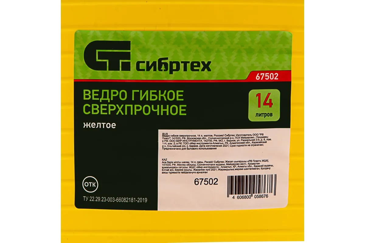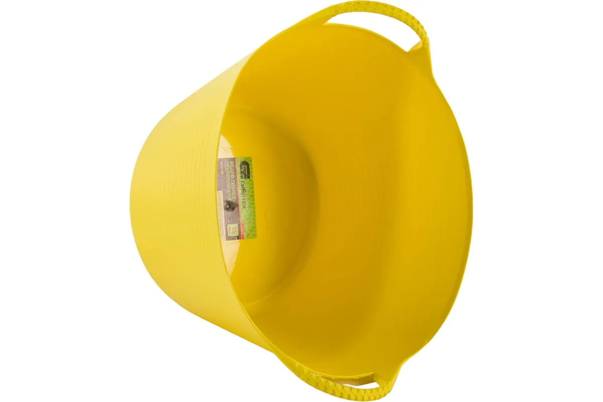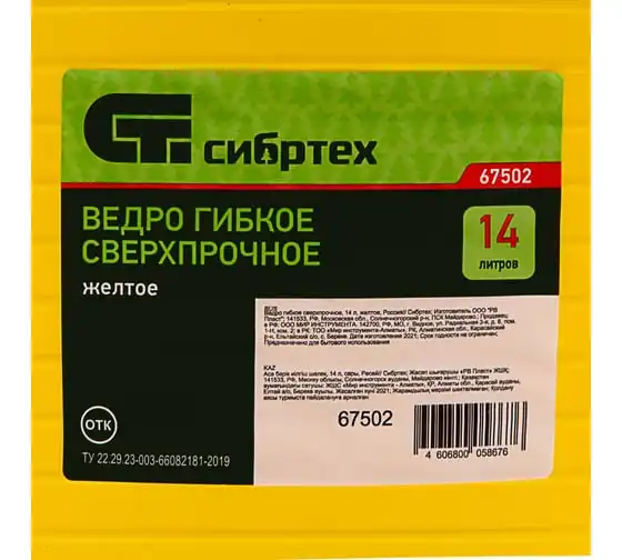 Сверхпрочное гибкое ведро Сибртех 67502 желтого цвета, объемом 14 л, пригодится на даче, стройке, рыбалке, в быту. В нем можно переносить воду для полива, сыпучие материалы для ремонта, замешивать строительные растворы и хранить корм для животных, также ведро пригодится во время сбора урожая.