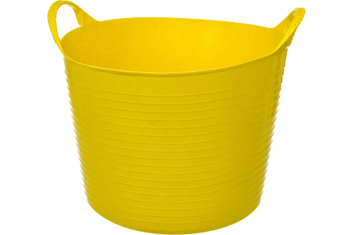 Сверхпрочное гибкое ведро Сибртех 67507 желтого цвета, объемом 40 л, пригодится на даче, стройке, рыбалке, в быту. В нем можно переносить воду для полива, сыпучие материалы для ремонта, замешивать строительные растворы и хранить корм для животных, также ведро пригодится во время сбора урожая.