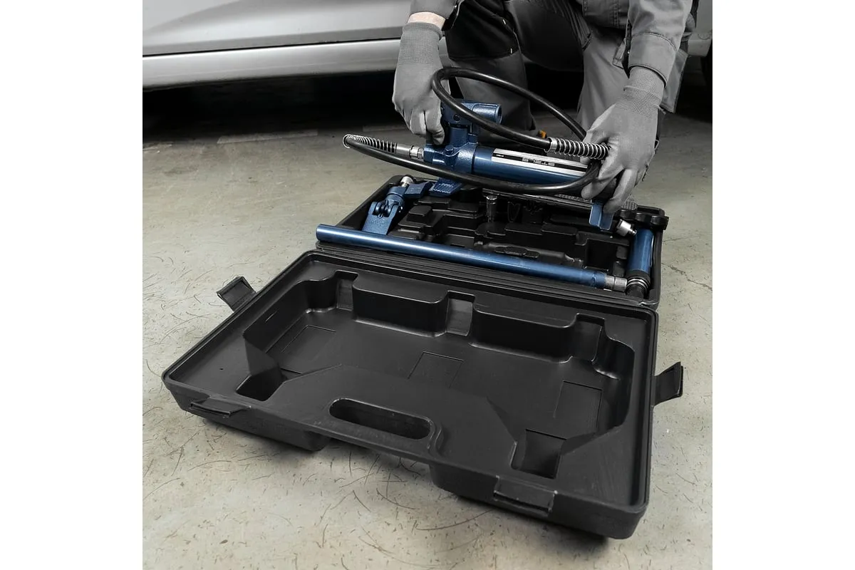 Гидравлическая растяжка STELS 4 т 16 предметов пластиковый кейс 51354 предназначен для проведения рихтовочных и кузовных работ. Гидравлический насос создает усилие в 4 тонны, что позволяет восстанавливать геометрию больших участков или целых конструкций. Пластиковый кейс позволяет удобно и компактно хранить и транспортировать набор.