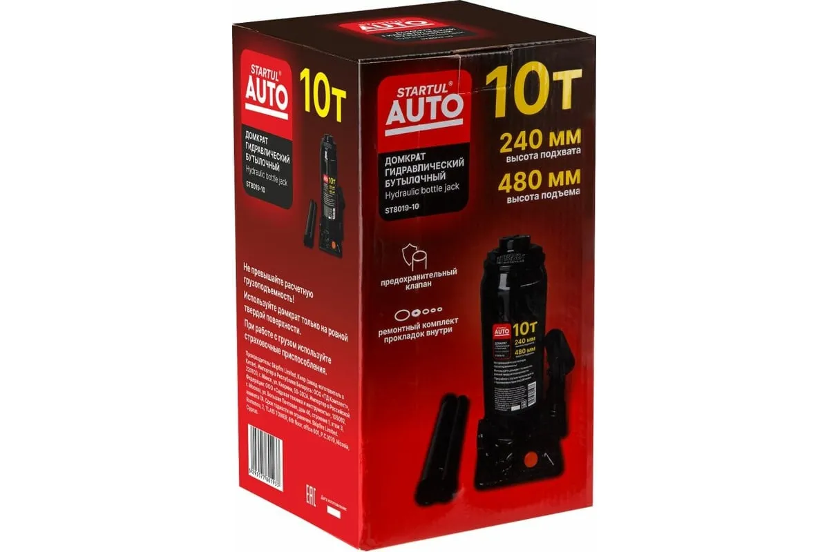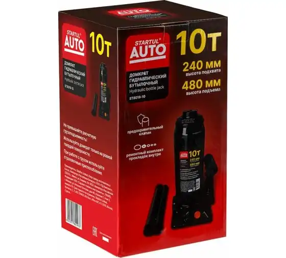 Гидравлический бутылочный домкрат 10 т Auto STARTUL ST8019-10 представляет собой устройство с ручным приводом, предназначенное для поднятия и фиксации грузов. Домкраты данного типа могут использоваться в качестве рабочего элемента в более сложных устройствах, таких как прессы, трубогибы, подъемники. Домкраты оснащены специальным предохранительным клапаном, обеспечивающим защиту от перегрузки, и не позволяющим поднятия веса более допустимого.