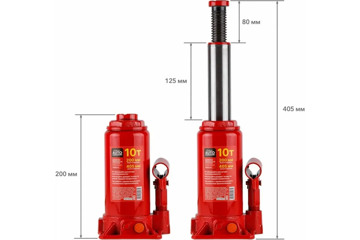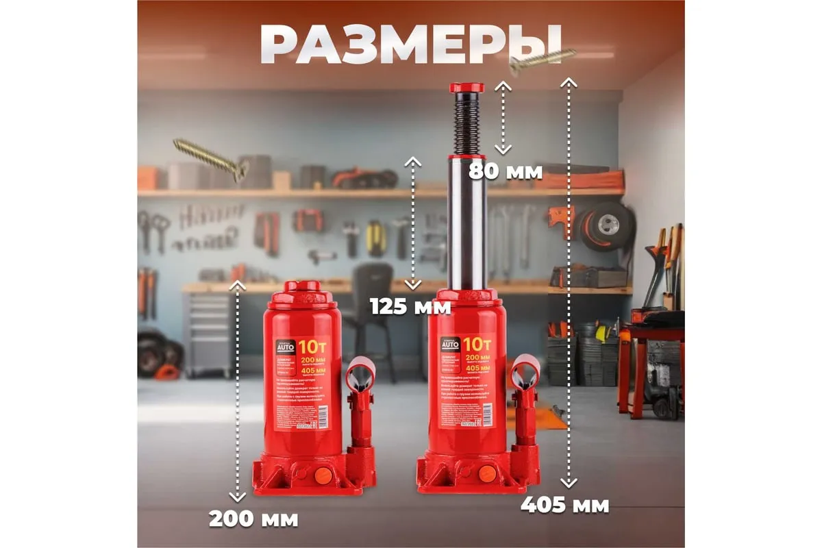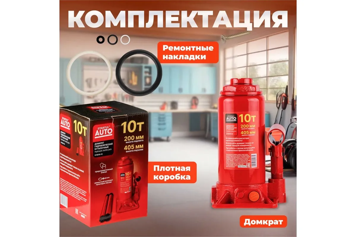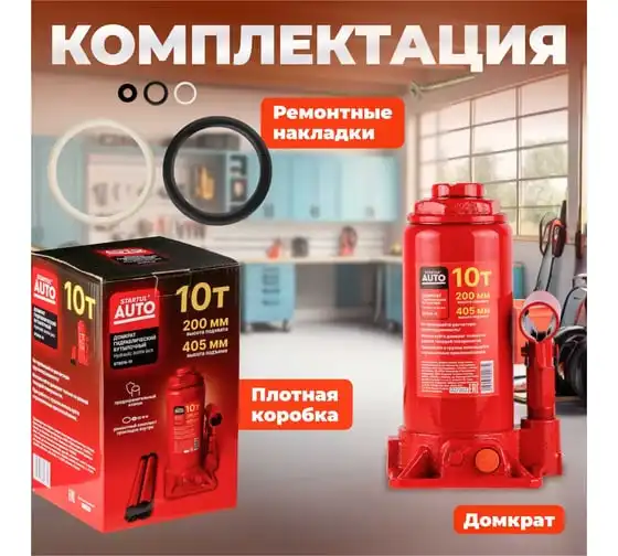 Гидравлический бутылочный домкрат STARTUL Auto 10 т ST8018-10 представляет собой устройство с ручным приводом, предназначенное для поднятия и фиксации грузов. Домкраты данного типа могут использоваться в качестве рабочего элемента в более сложных устройствах, таких как прессы, трубогибы, подъемники. Домкраты оснащены специальным предохранительным клапаном, обеспечивающим защиту от перегрузки и не позволяющим поднятия веса более допустимого.