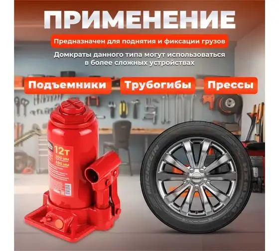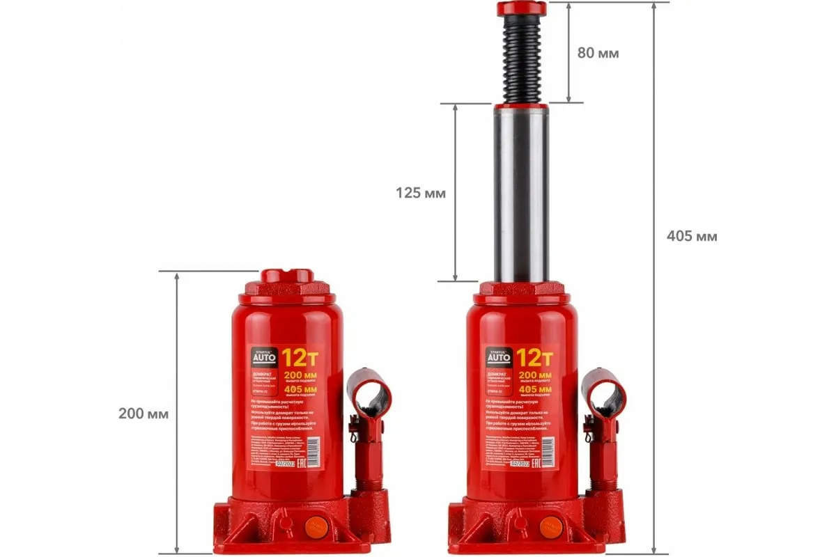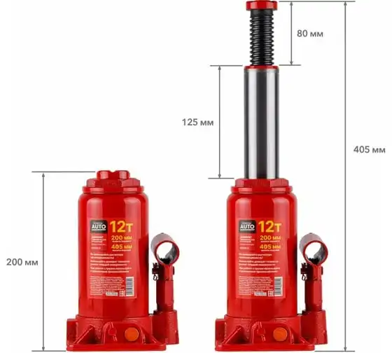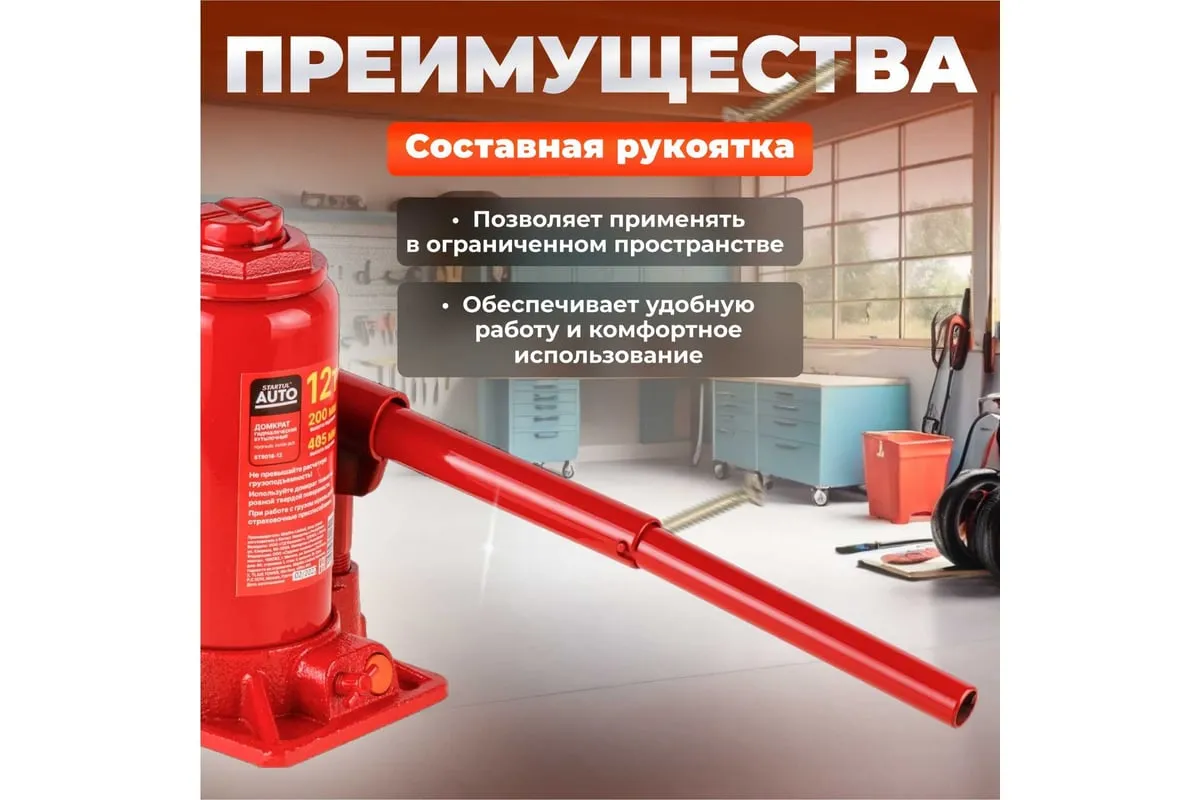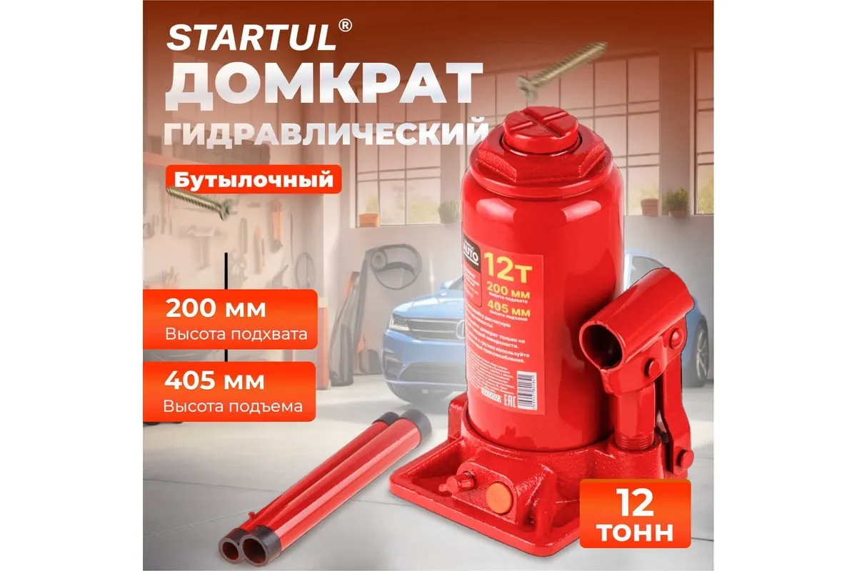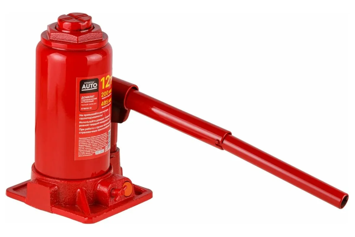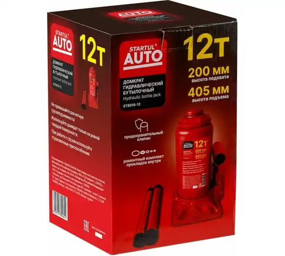 Гидравлический бутылочный домкрат STARTUL Auto 12 т ST8018-12 представляет собой устройство с ручным приводом, предназначенное для поднятия и фиксации грузов. Домкраты данного типа могут использоваться в качестве рабочего элемента в более сложных устройствах, таких как прессы, трубогибы, подъемники. Домкраты оснащены специальным предохранительным клапаном, обеспечивающим защиту от перегрузки и не позволяющим поднятия веса более допустимого.