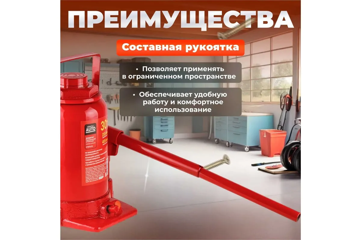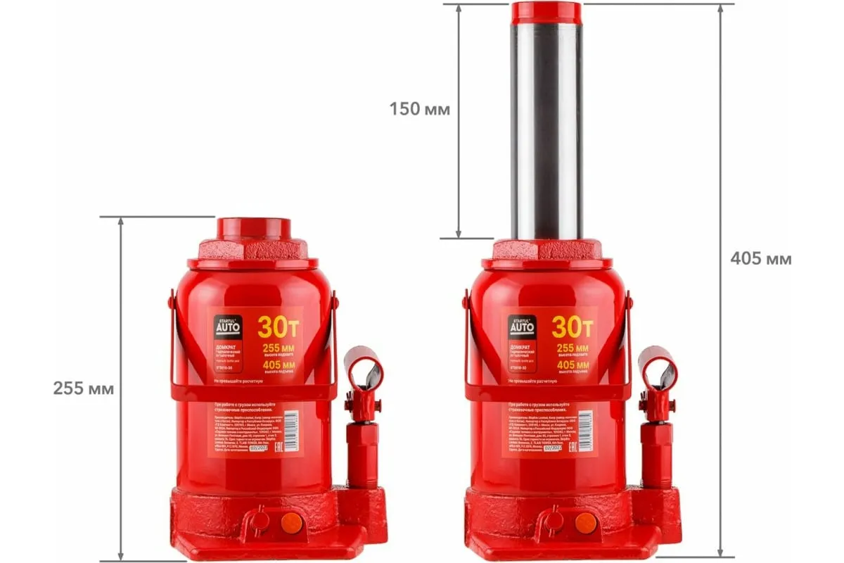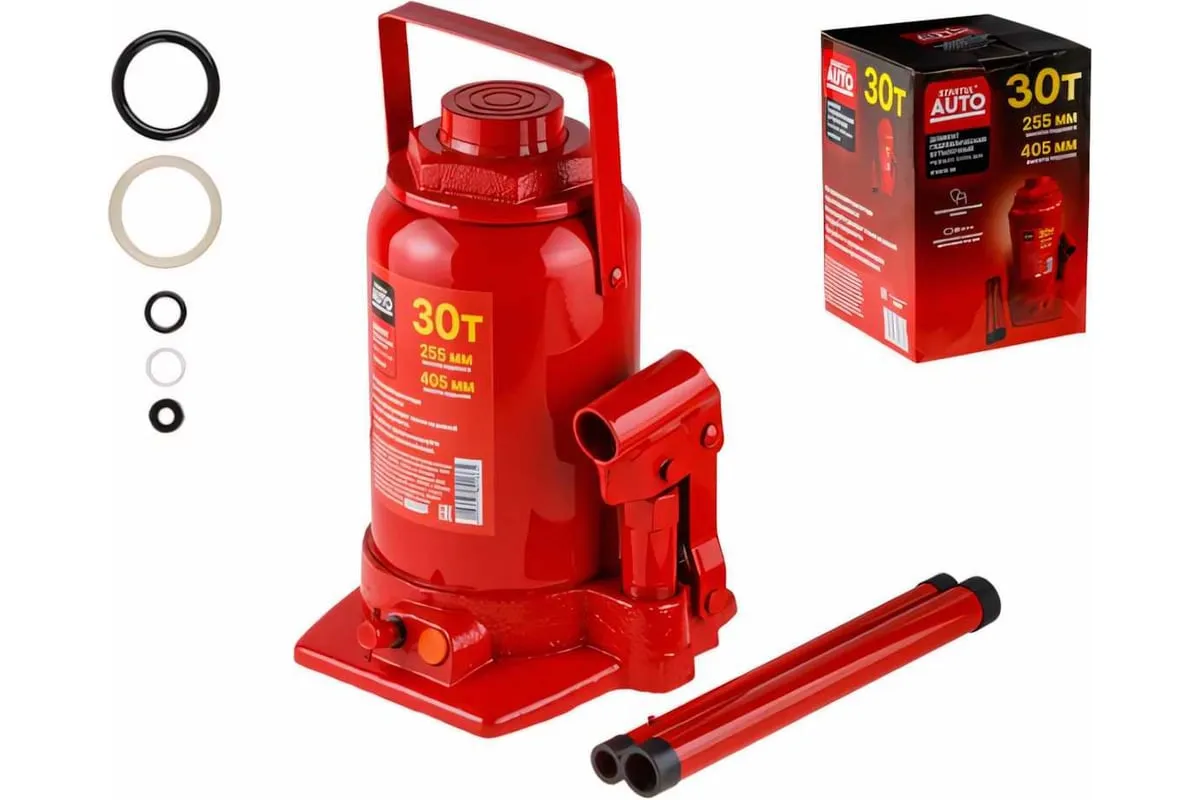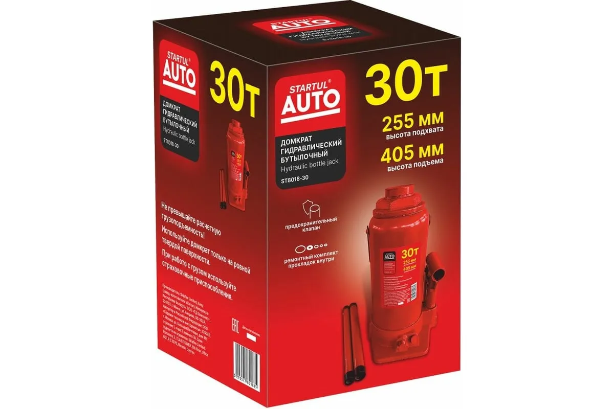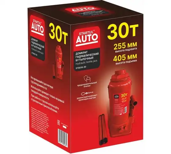 Гидравлический бутылочный домкрат STARTUL Auto 30 т ST8018-30 представляет собой устройство с ручным приводом, предназначенное для поднятия и фиксации грузов. Домкраты данного типа могут использоваться в качестве рабочего элемента в более сложных устройствах, таких как прессы, трубогибы, подъемники. Домкраты оснащены специальным предохранительным клапаном, обеспечивающим защиту от перегрузки и не позволяющим поднятия веса более допустимого.