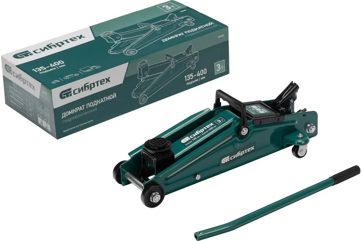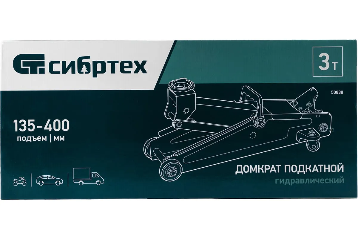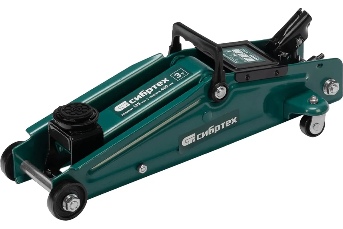 Гидравлический подкатной домкрат Сибртех 50838 с высотой подхвата 135 мм, предназначен для подъема грузов массой до 3 т на высоту до 400 мм. Применяется для обслуживания автомобилей со стандартным клиренсом. Компактный домкрат подходит для самостоятельного использования автовладельцами.