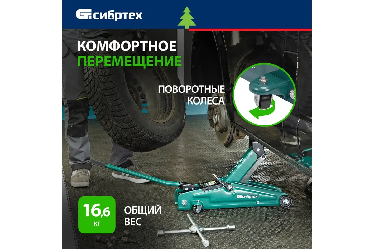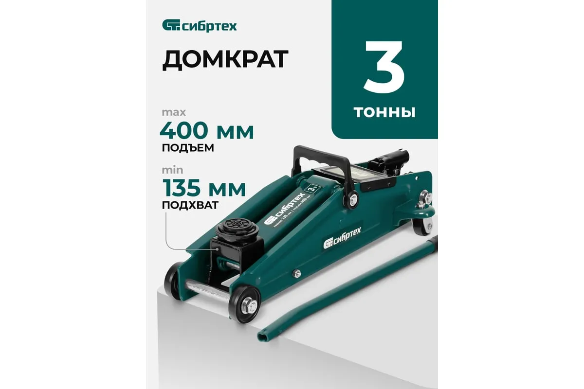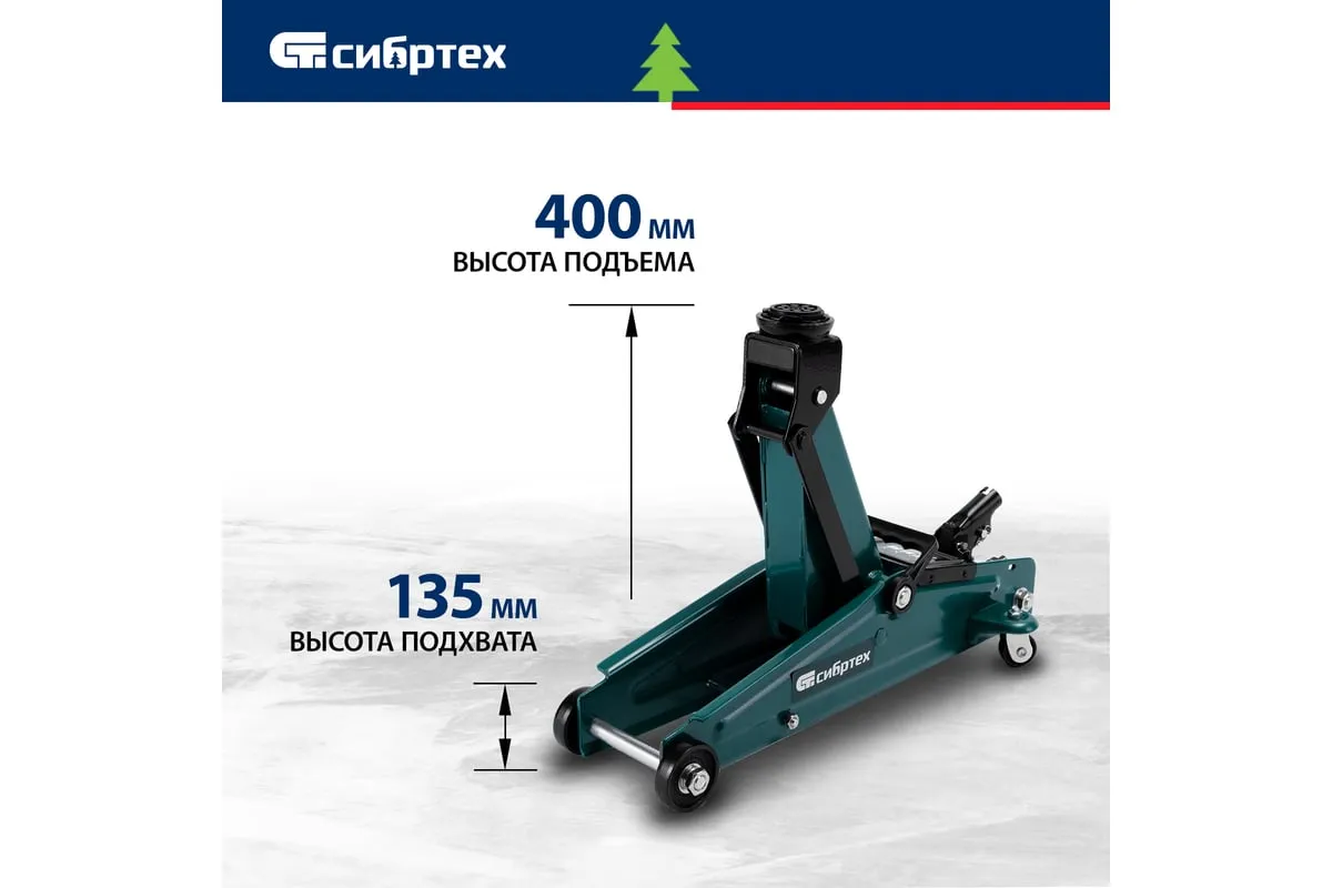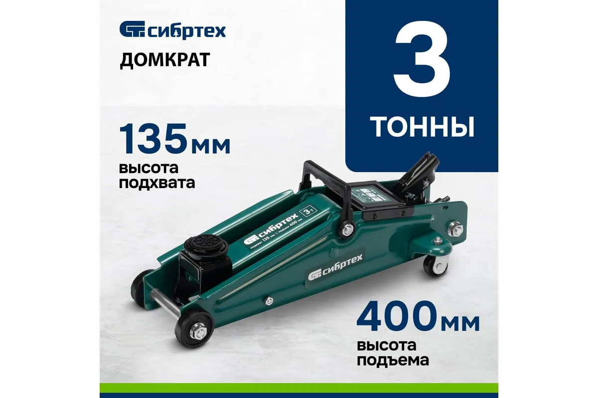 Гидравлический подкатной домкрат Сибртех 50838 с высотой подхвата 135 мм, предназначен для подъема грузов массой до 3 т на высоту до 400 мм. Применяется для обслуживания автомобилей со стандартным клиренсом. Компактный домкрат подходит для самостоятельного использования автовладельцами.
