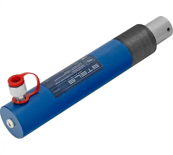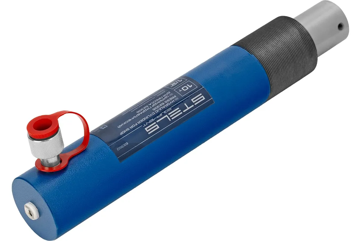 Гидравлический цилиндр Stels 52360 — исполнительный механизм гидравлического пресса Stels 52305, позволяющий работать с прижимным усилием до 10 т. Ход штока составляет 175 мм. Установленный на пресс цилиндр используется для проведения работ по запрессовке и выпрессовке подшипников, сайлентблоков, втулок, штифтов и других деталей. Незаменим в гараже и автосервисе.