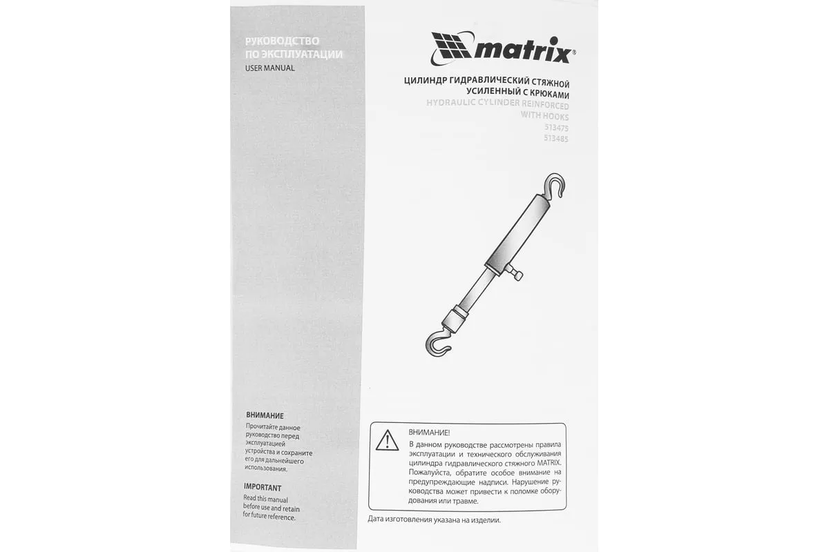 Гидравлический цилиндр MATRIX 10 т, стяжной усиленный с крюками 513485 - незаменимый инструмент для рихтовки и стягивания кузова автомобиля.